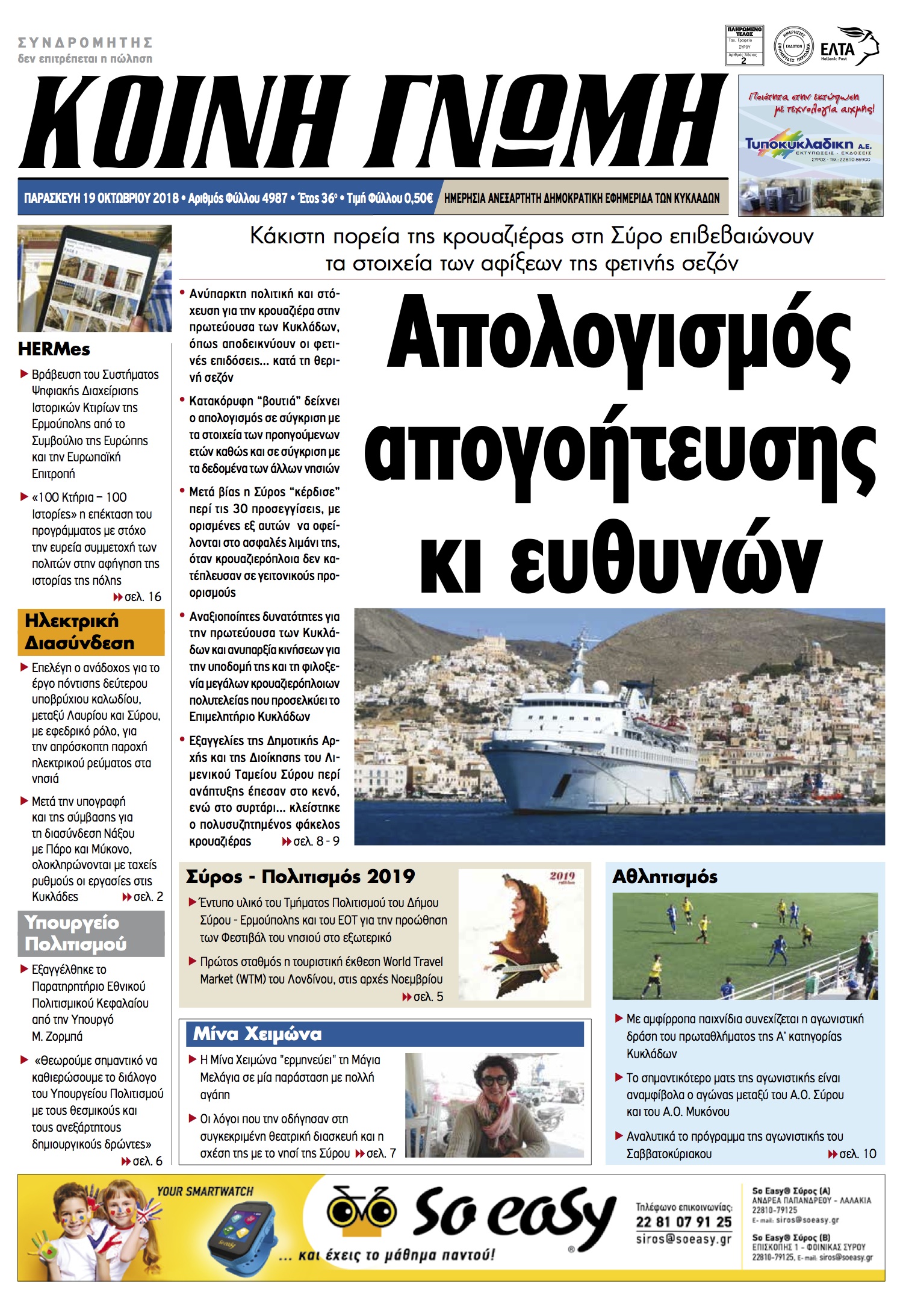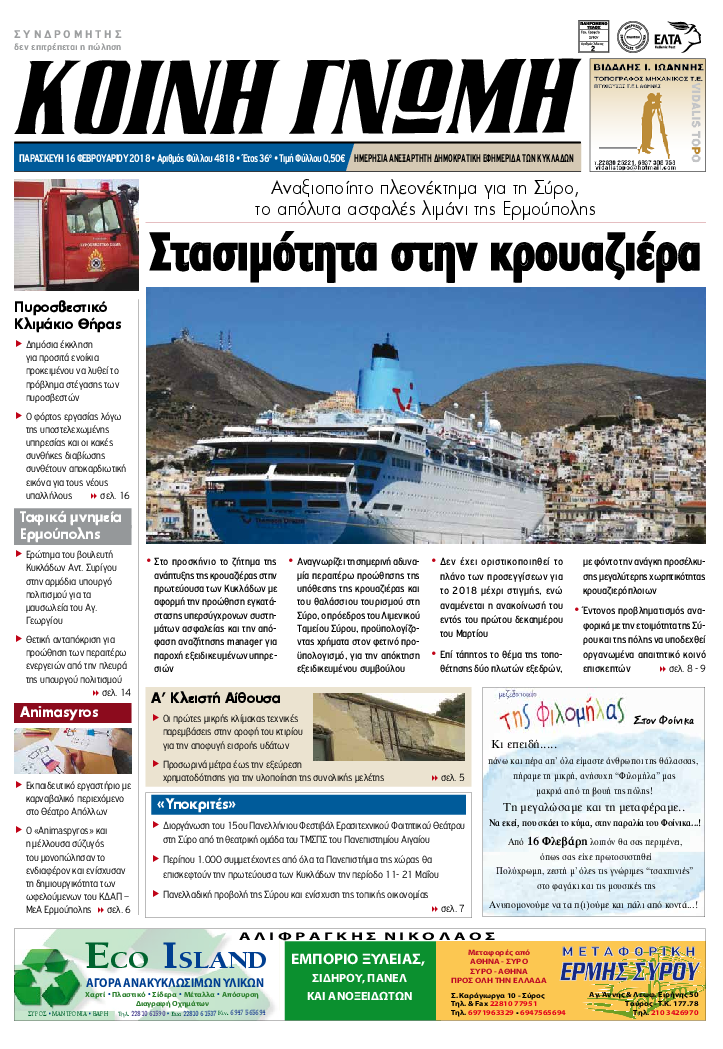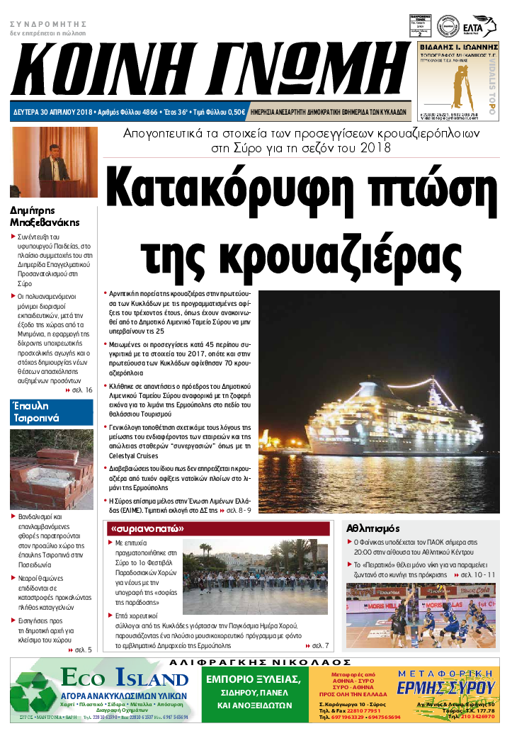 ΚΟΙΝΗ ΓΝΩΜΗ ΚΟΙΝΗ ΓΝΩΜΗ Ημερησια Εφημεριδα των Κυκλαδων