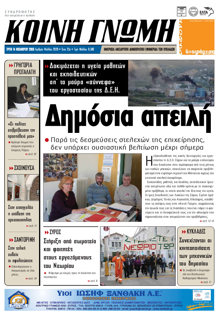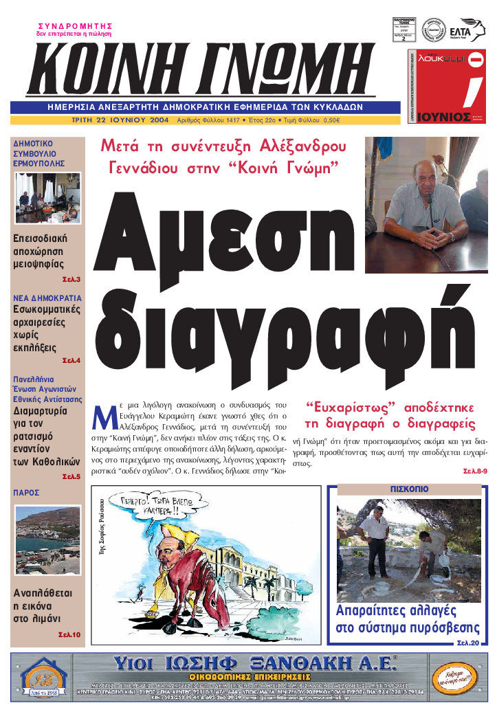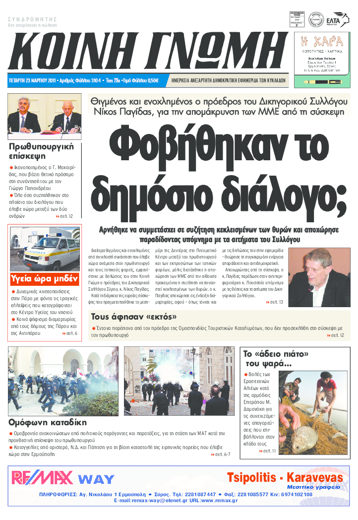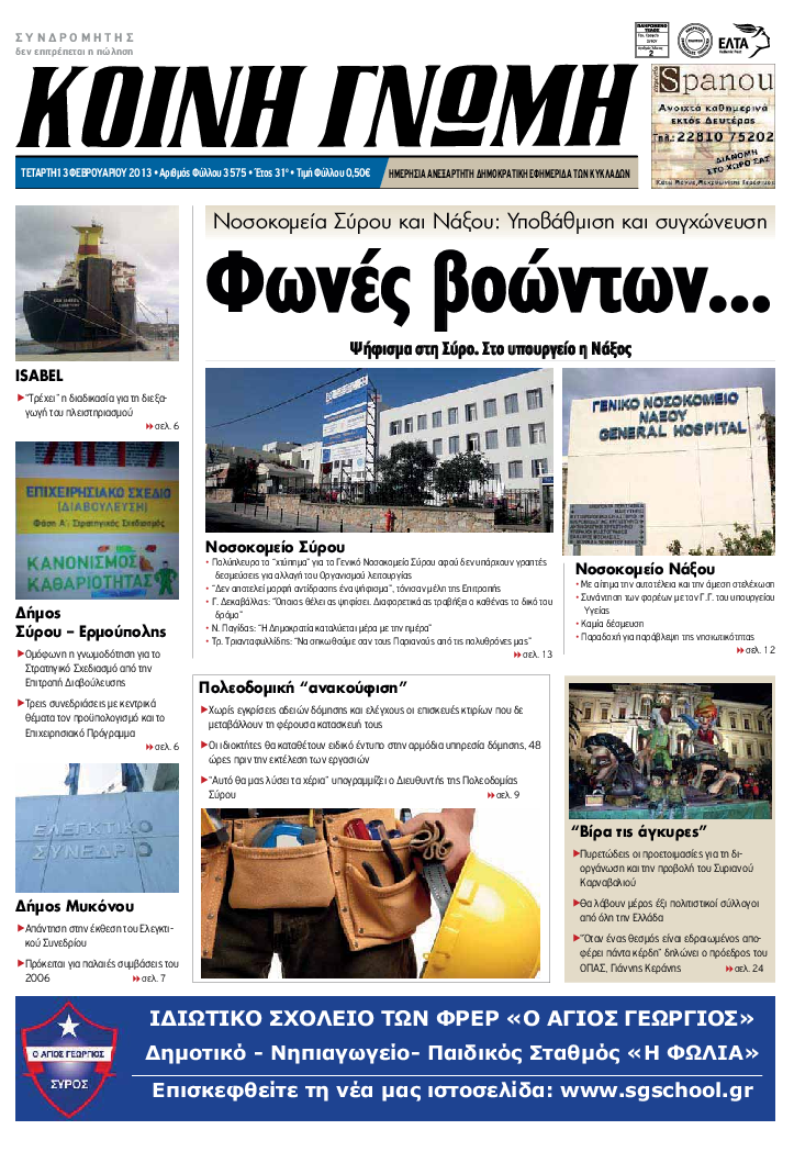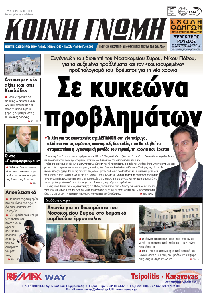 ΚΟΙΝΗ ΓΝΩΜΗ ΚΟΙΝΗ ΓΝΩΜΗ Ημερησια Εφημεριδα των Κυκλαδων