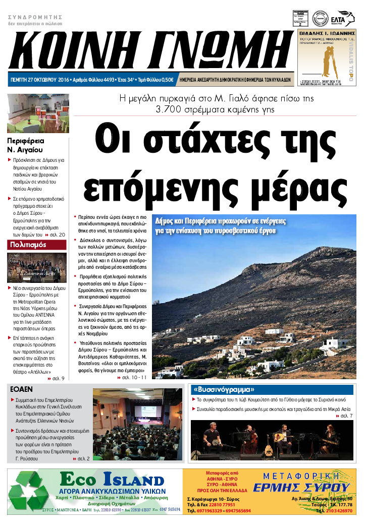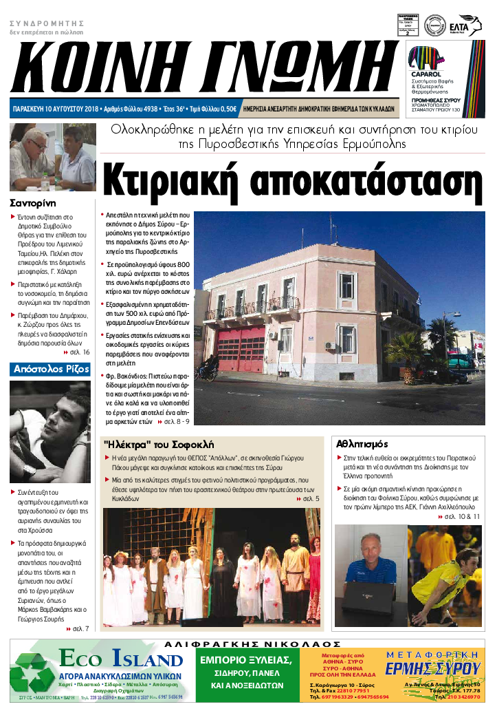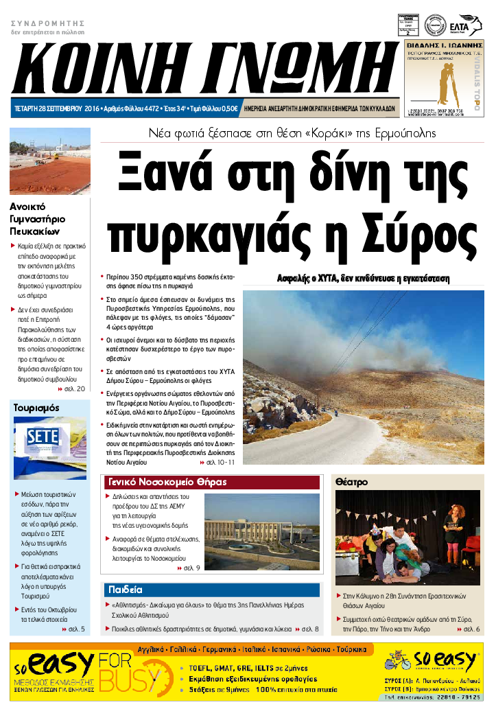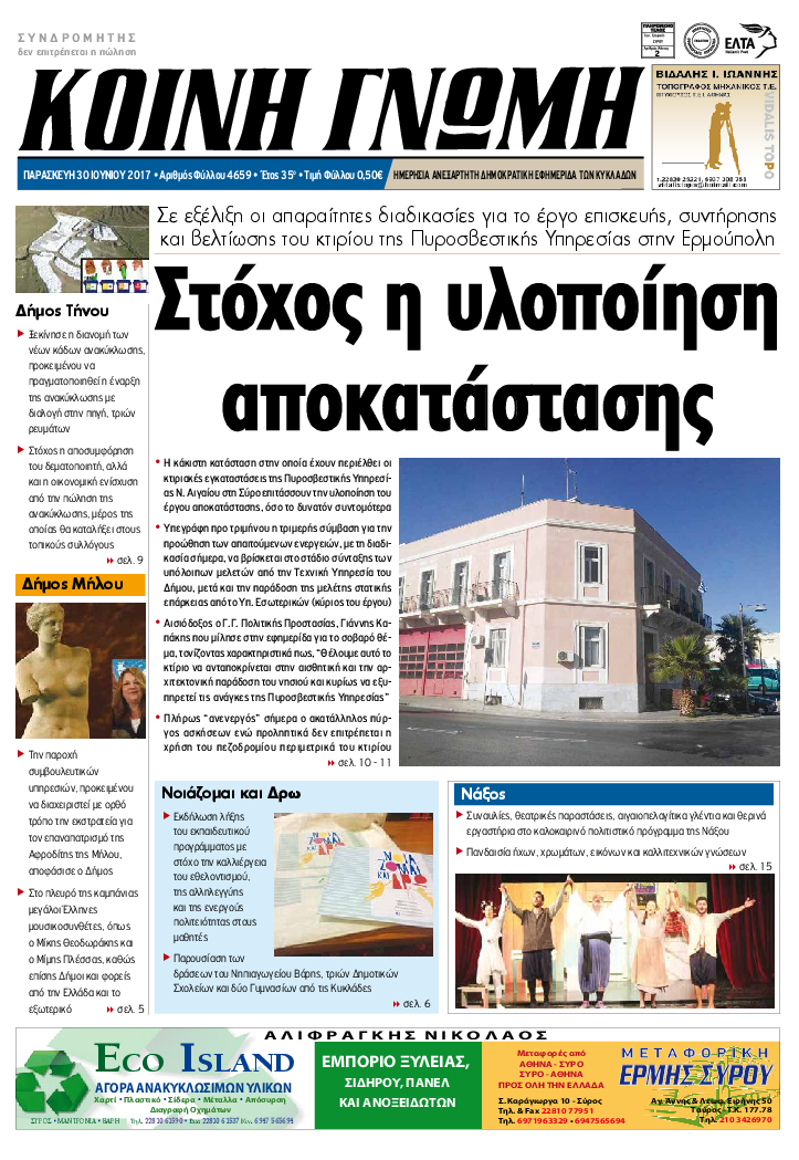 ΚΟΙΝΗ ΓΝΩΜΗ ΚΟΙΝΗ ΓΝΩΜΗ Ημερησια Εφημεριδα των Κυκλαδων