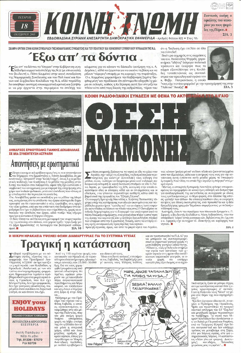 ΚΟΙΝΗ ΓΝΩΜΗ ΚΟΙΝΗ ΓΝΩΜΗ Ημερησια Εφημεριδα των Κυκλαδων