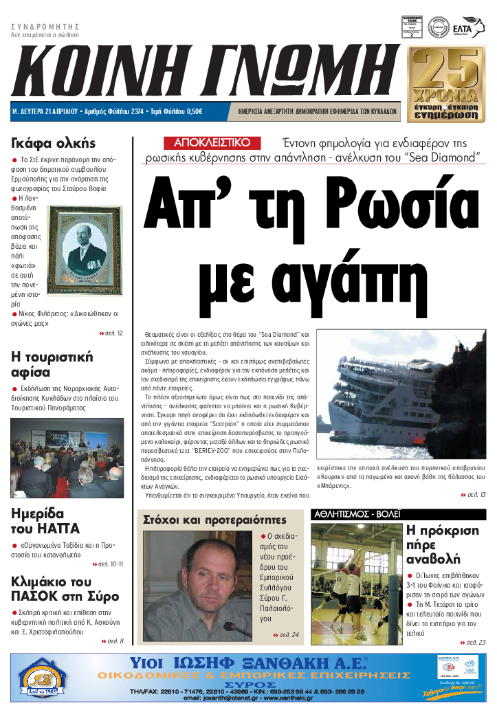 ΚΟΙΝΗ ΓΝΩΜΗ ΚΟΙΝΗ ΓΝΩΜΗ Ημερησια Εφημεριδα των Κυκλαδων