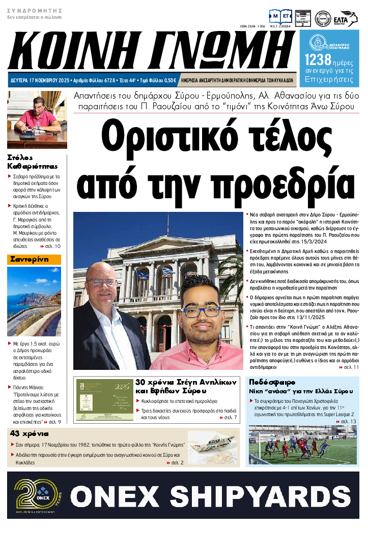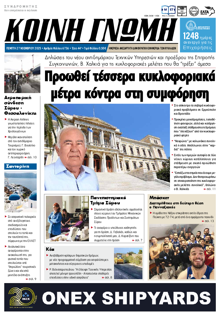ΚΟΙΝΗ ΓΝΩΜΗ ΚΟΙΝΗ ΓΝΩΜΗ Ημερησια Εφημεριδα των Κυκλαδων