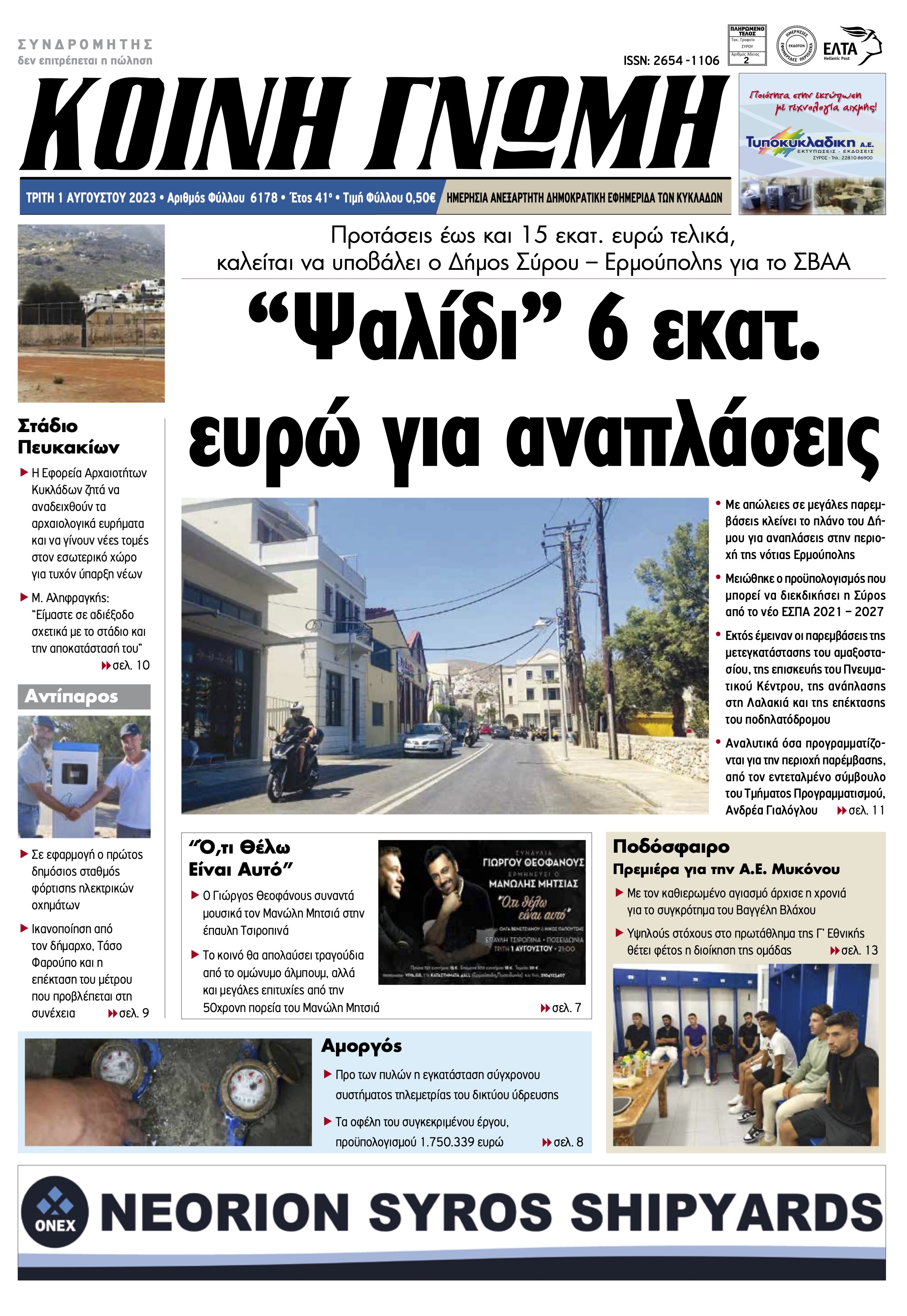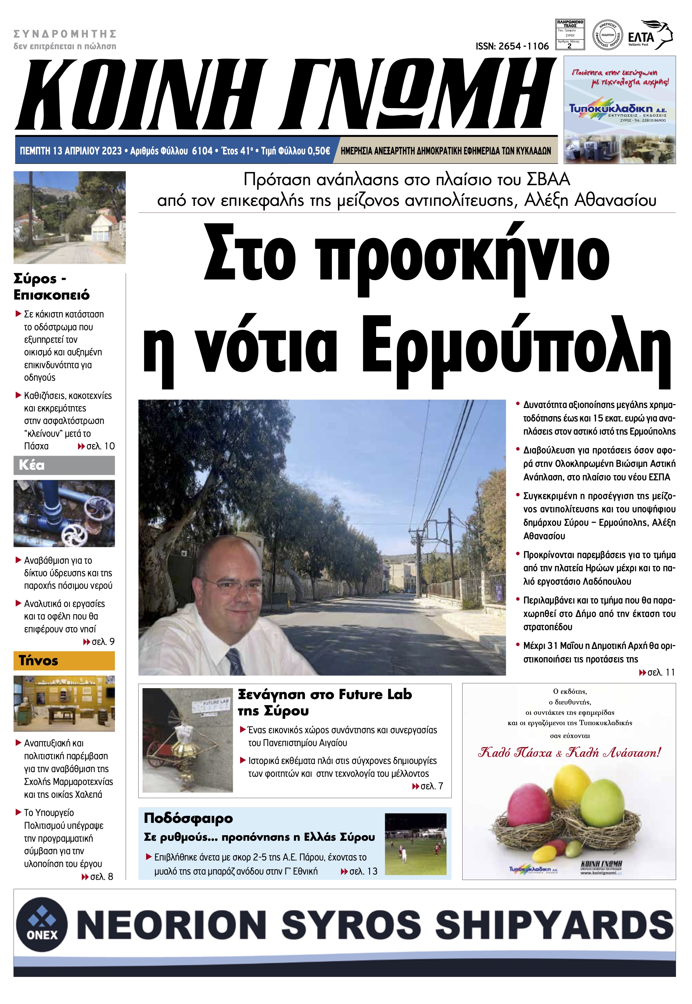 ΚΟΙΝΗ ΓΝΩΜΗ ΚΟΙΝΗ ΓΝΩΜΗ Ημερησια Εφημεριδα των Κυκλαδων