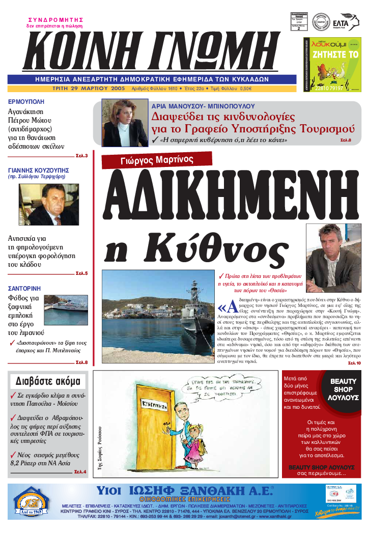ΚΟΙΝΗ ΓΝΩΜΗ ΚΟΙΝΗ ΓΝΩΜΗ Ημερησια Εφημεριδα των Κυκλαδων