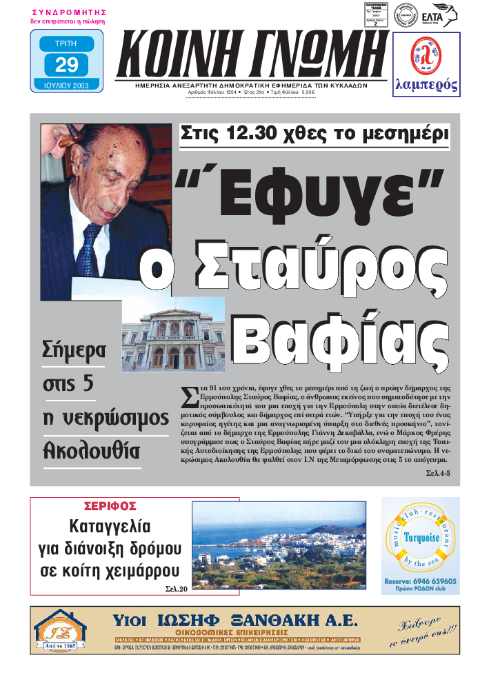 Ημερησια Εφημεριδα των Κυκλαδων