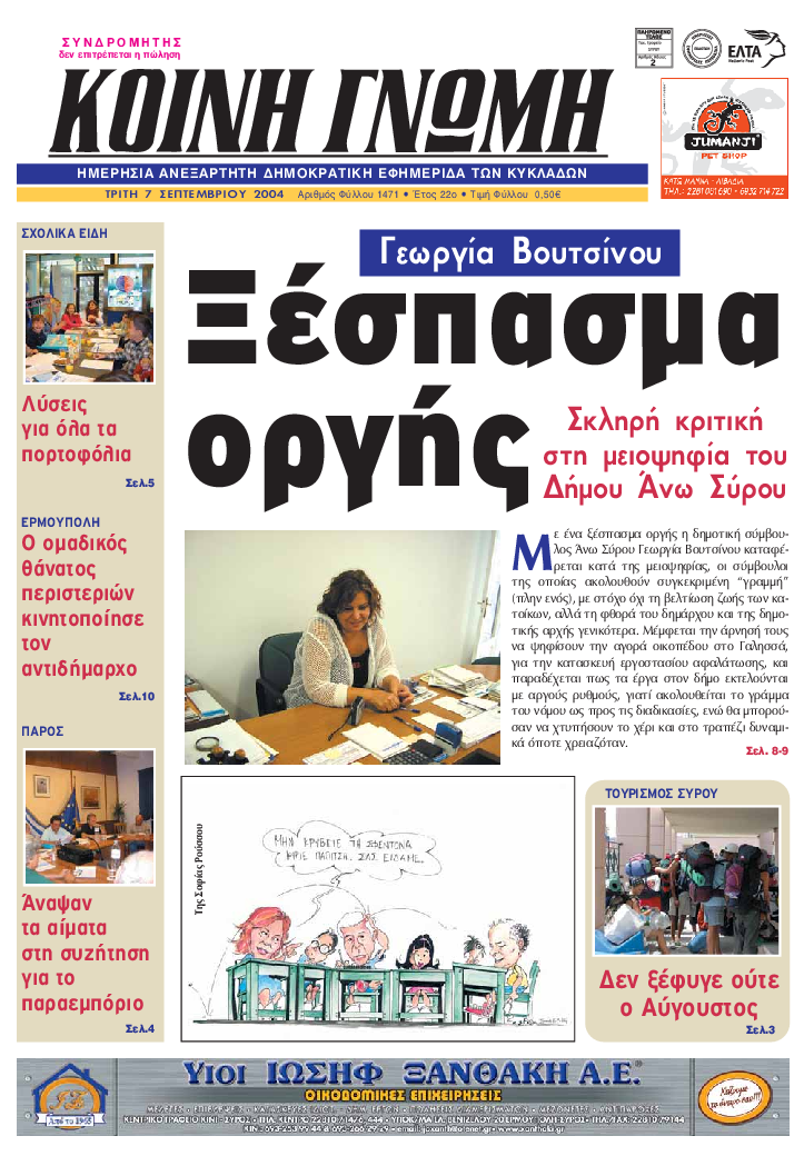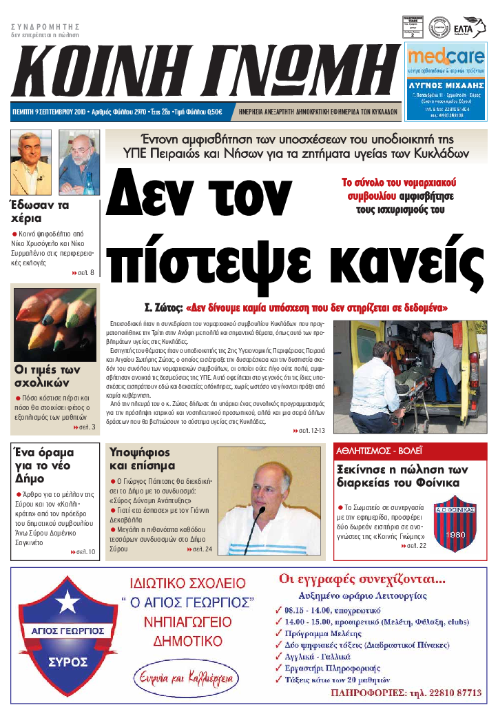ΚΟΙΝΗ ΓΝΩΜΗ ΚΟΙΝΗ ΓΝΩΜΗ Ημερησια Εφημεριδα των Κυκλαδων
