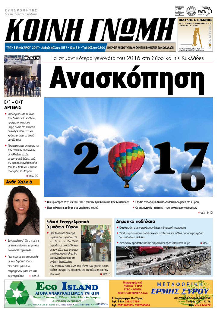 ΚΟΙΝΗ ΓΝΩΜΗ ΚΟΙΝΗ ΓΝΩΜΗ Ημερησια Εφημεριδα των Κυκλαδων