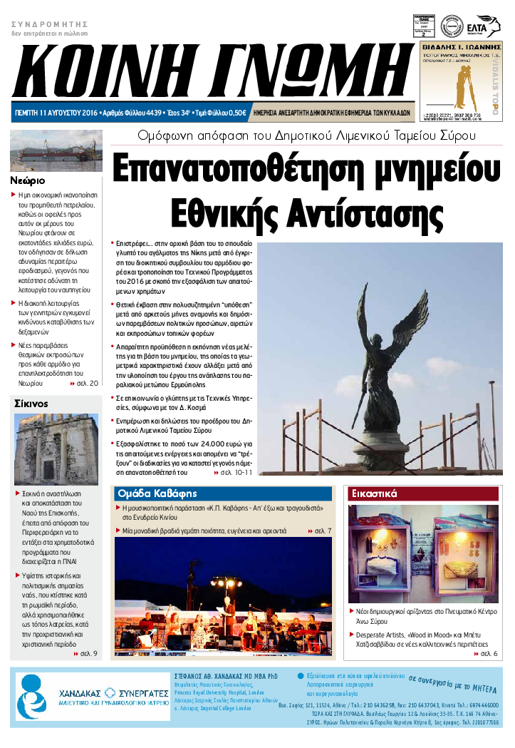 ΚΟΙΝΗ ΓΝΩΜΗ ΚΟΙΝΗ ΓΝΩΜΗ Ημερησια Εφημεριδα των Κυκλαδων