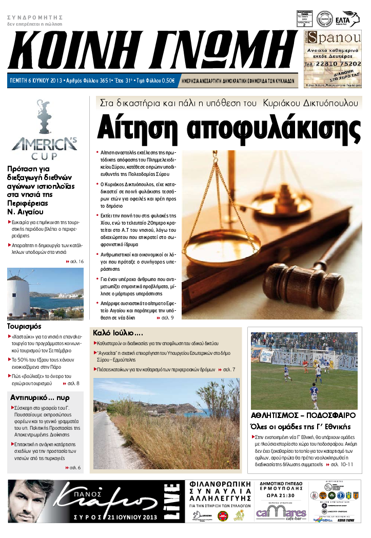 ΚΟΙΝΗ ΓΝΩΜΗ ΚΟΙΝΗ ΓΝΩΜΗ Ημερησια Εφημεριδα των Κυκλαδων