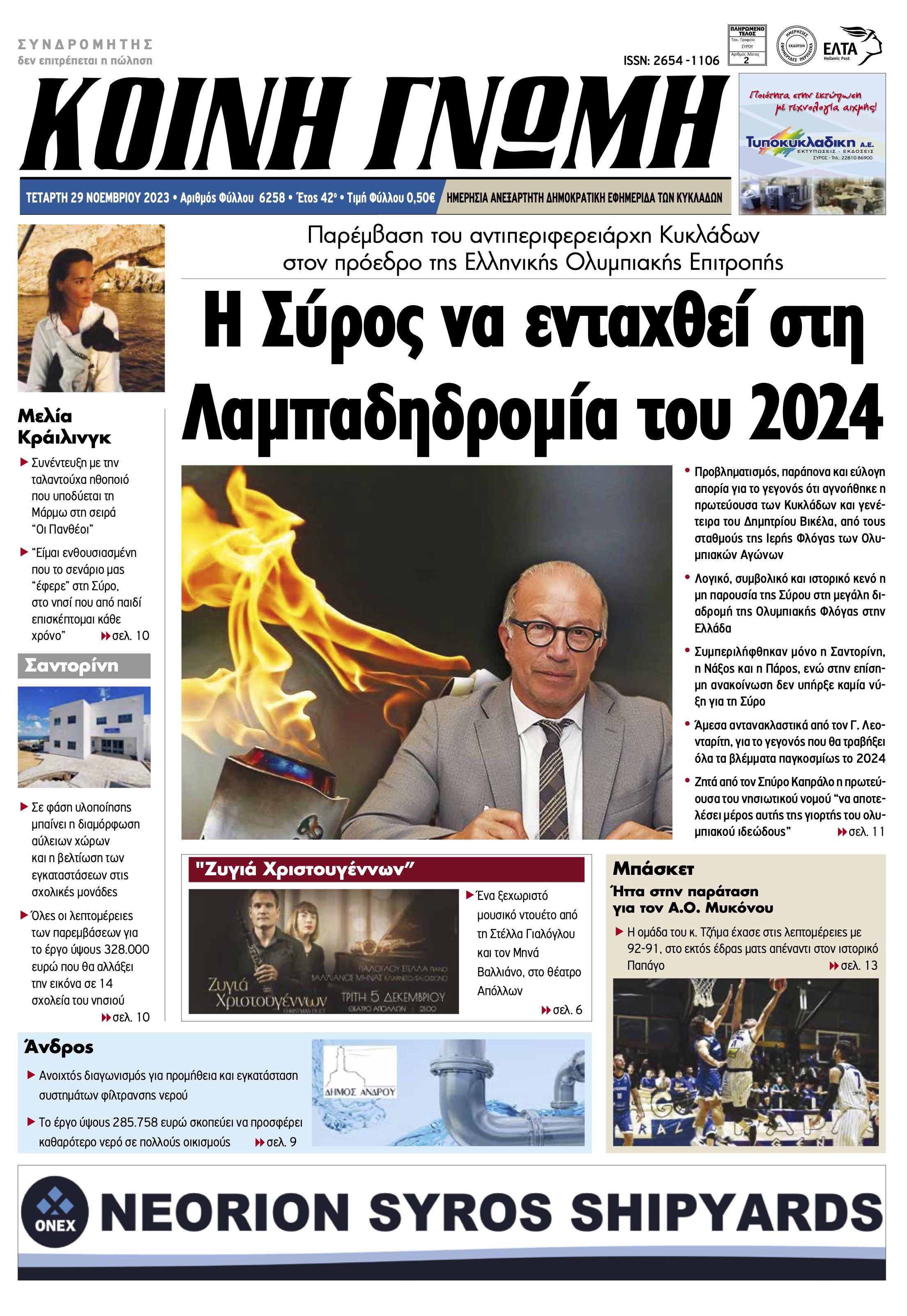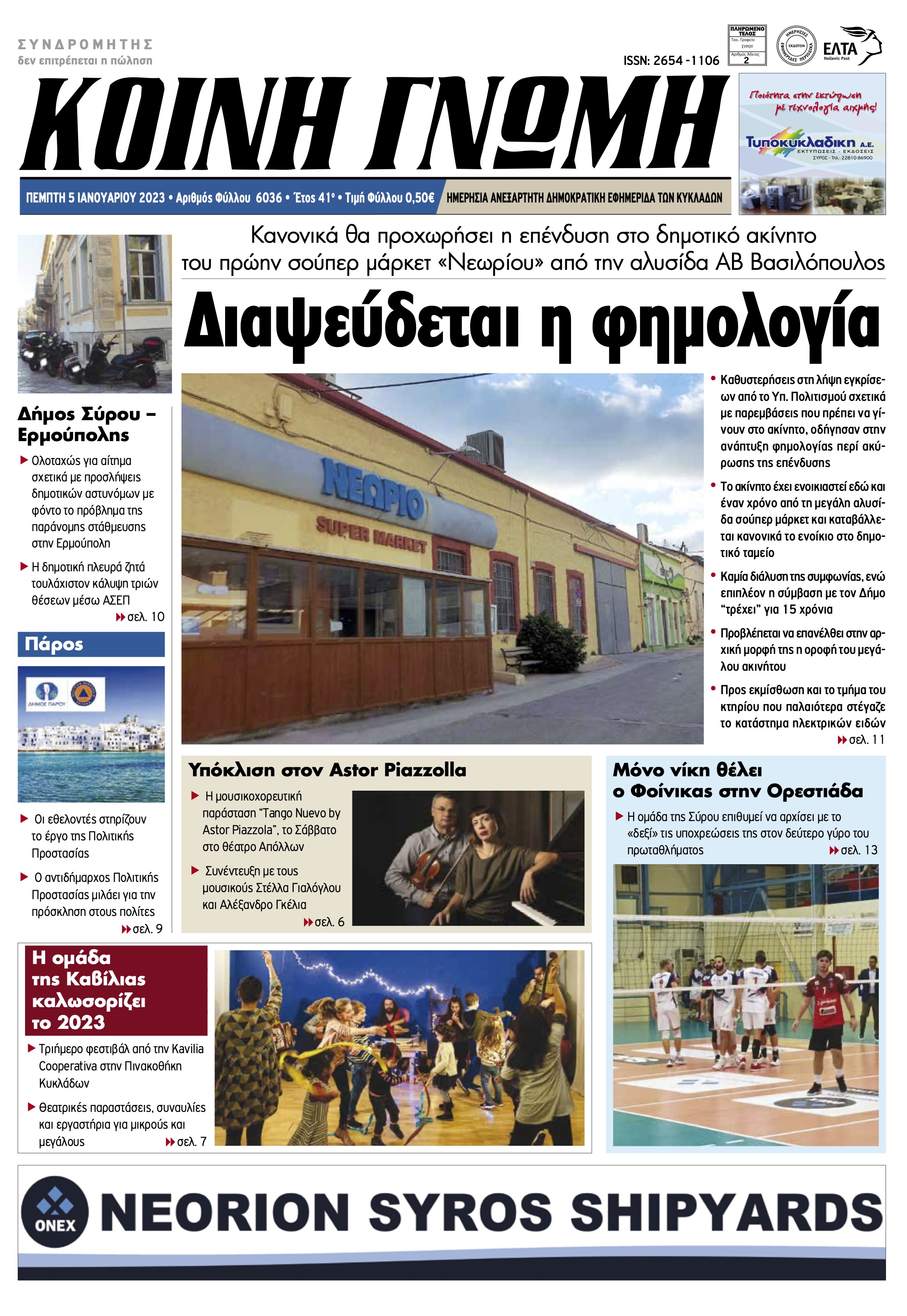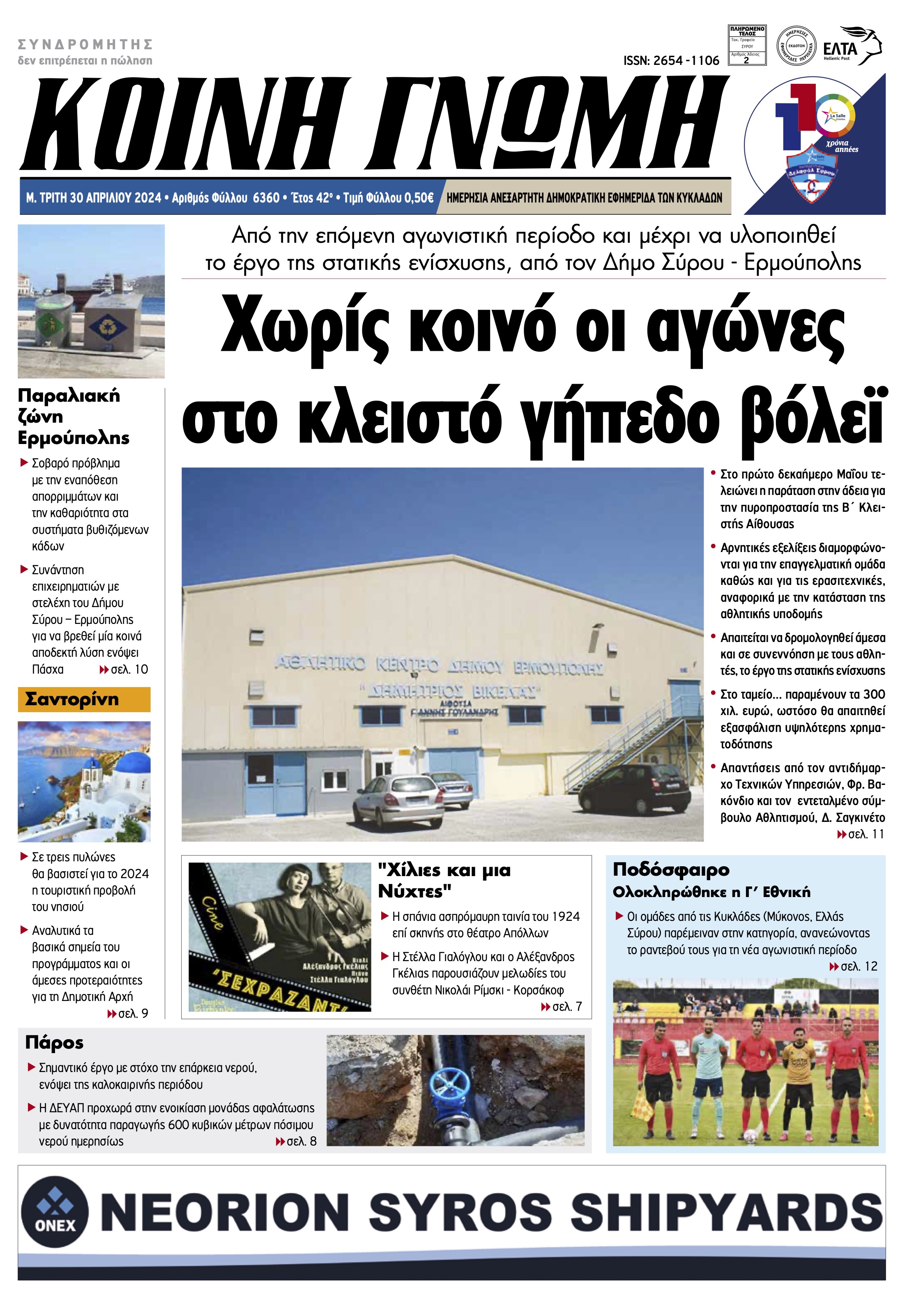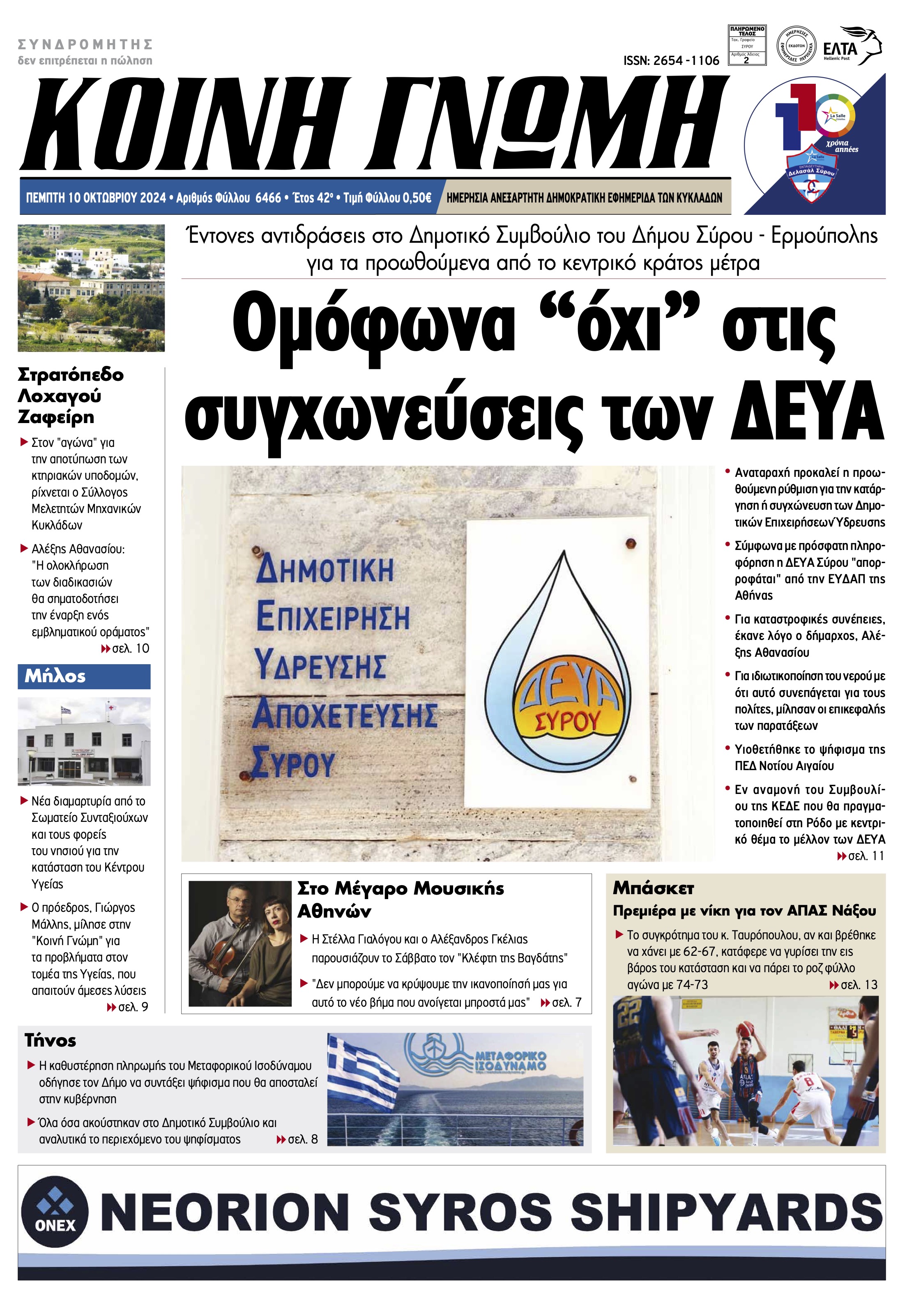 ΚΟΙΝΗ ΓΝΩΜΗ ΚΟΙΝΗ ΓΝΩΜΗ Ημερησια Εφημεριδα των Κυκλαδων