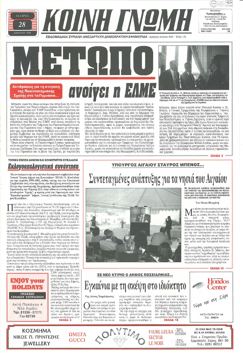 ΚΟΙΝΗ ΓΝΩΜΗ ΚΟΙΝΗ ΓΝΩΜΗ Ημερησια Εφημεριδα των Κυκλαδων