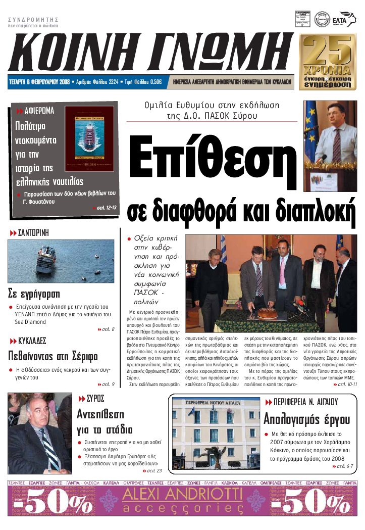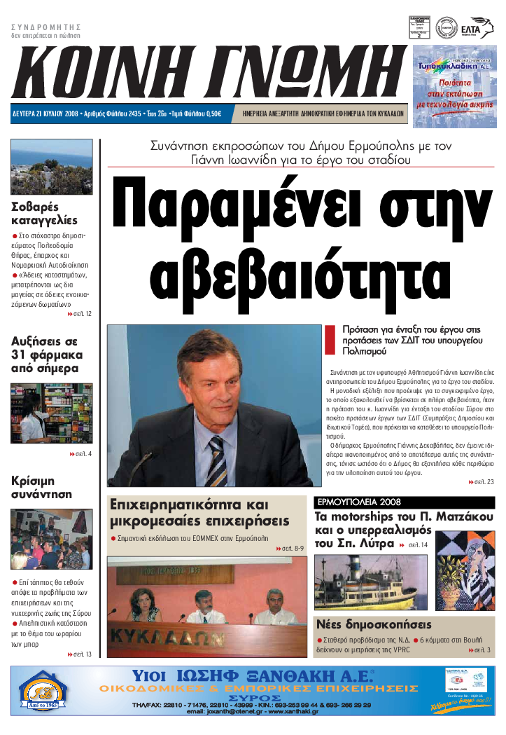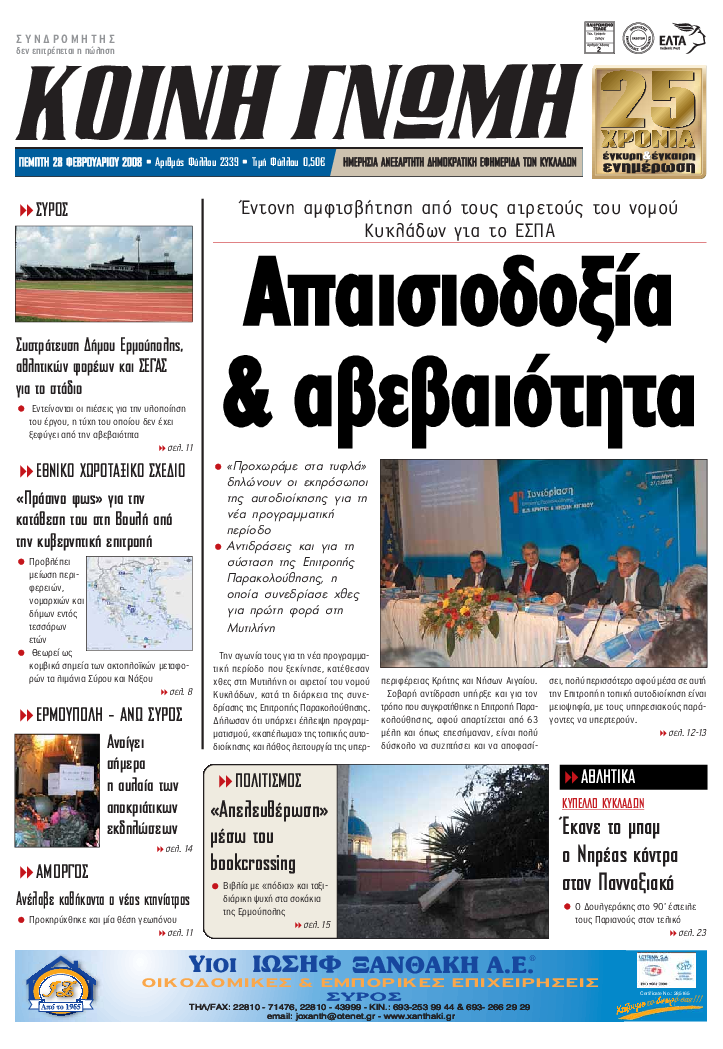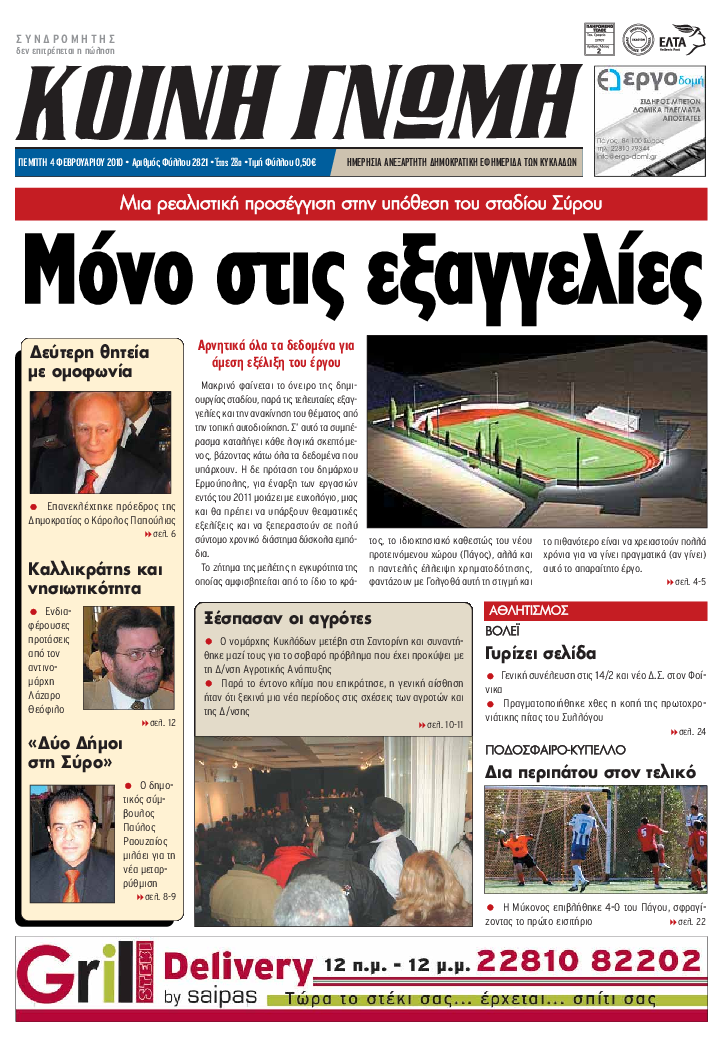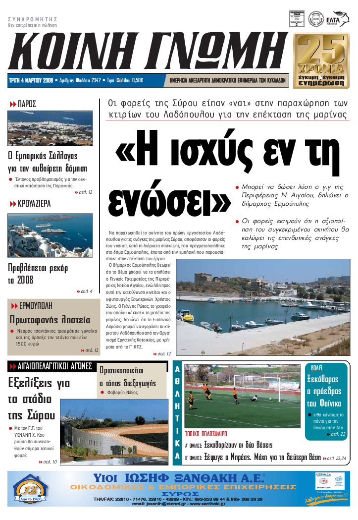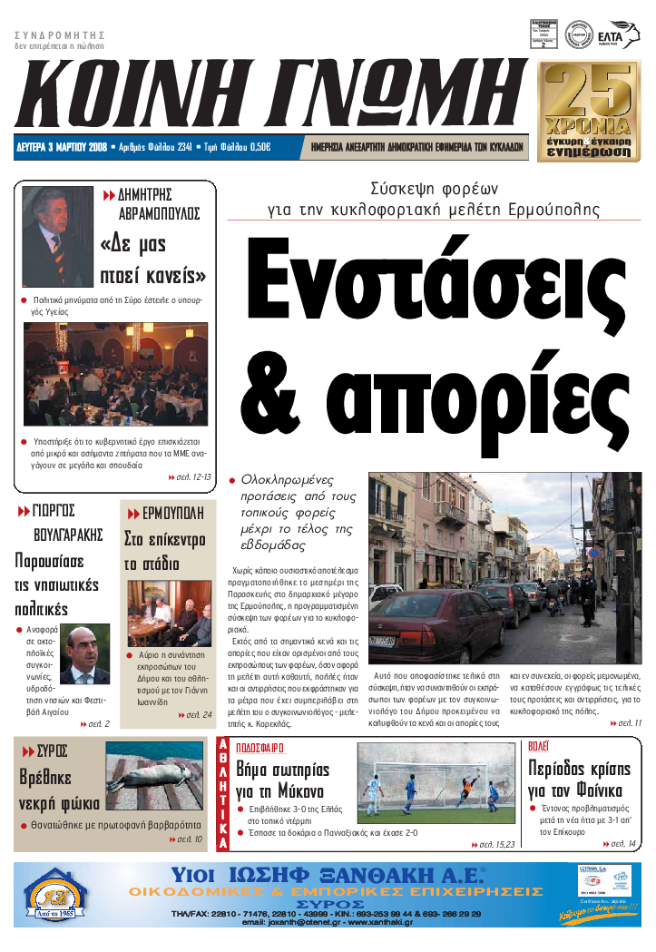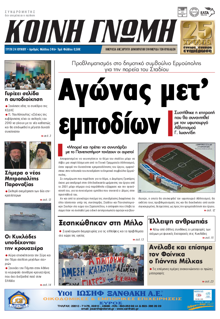 ΚΟΙΝΗ ΓΝΩΜΗ ΚΟΙΝΗ ΓΝΩΜΗ Ημερησια Εφημεριδα των Κυκλαδων