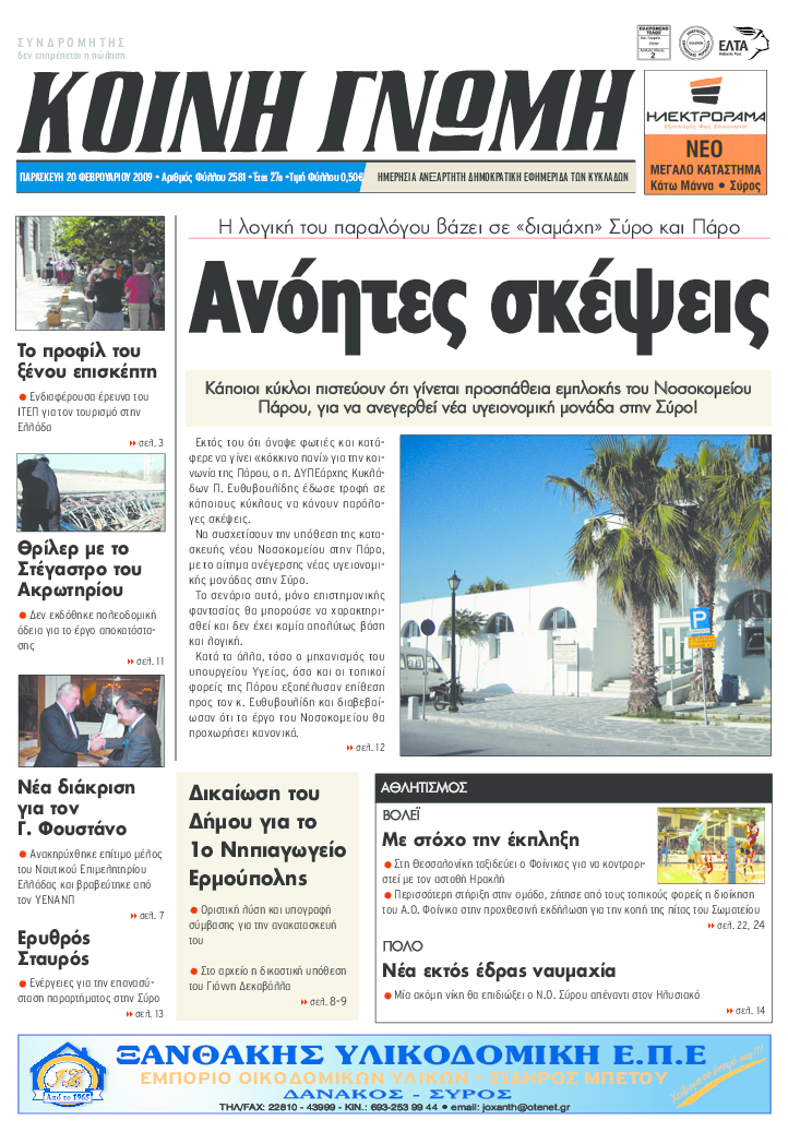 ΚΟΙΝΗ ΓΝΩΜΗ ΚΟΙΝΗ ΓΝΩΜΗ Ημερησια Εφημεριδα των Κυκλαδων