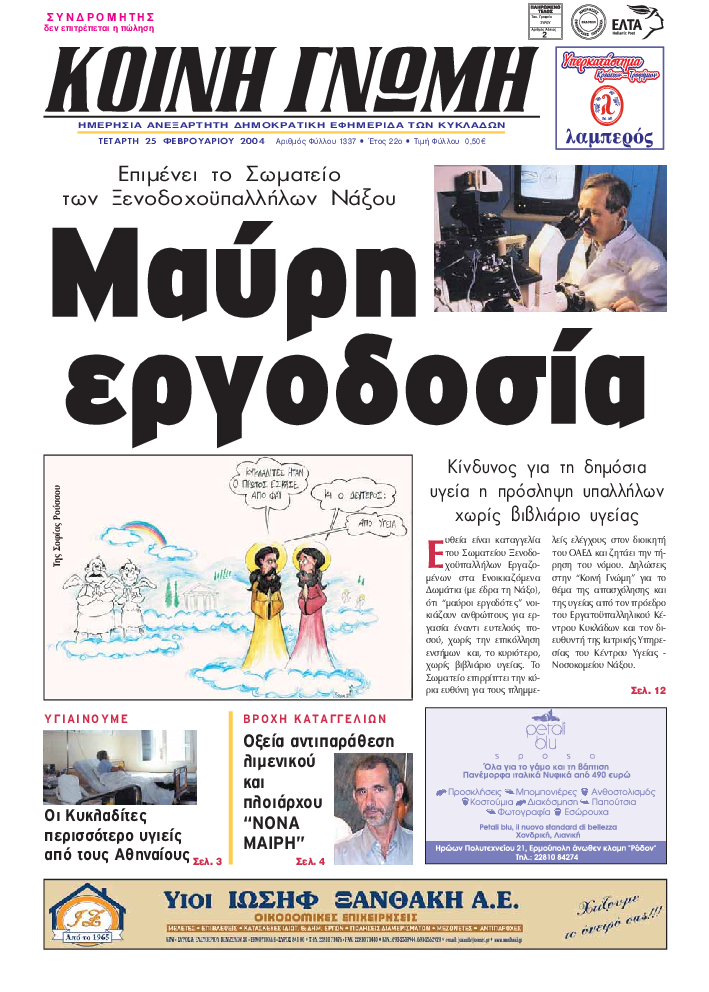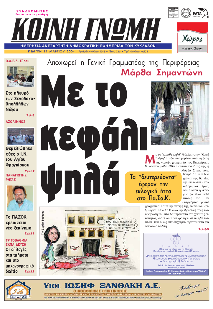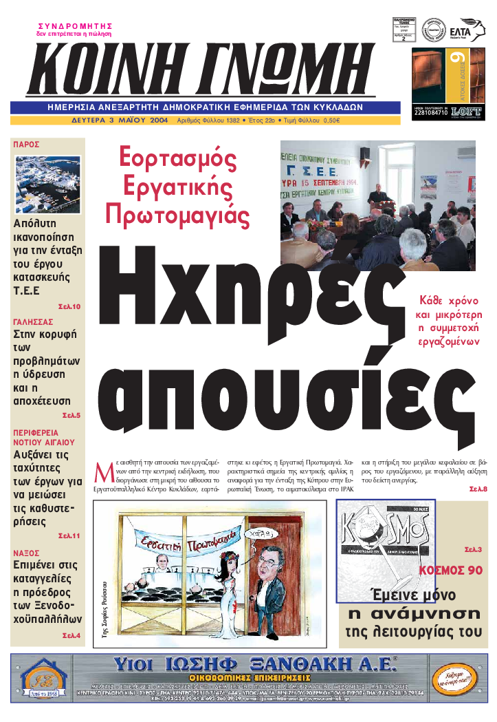 ΚΟΙΝΗ ΓΝΩΜΗ ΚΟΙΝΗ ΓΝΩΜΗ Ημερησια Εφημεριδα των Κυκλαδων