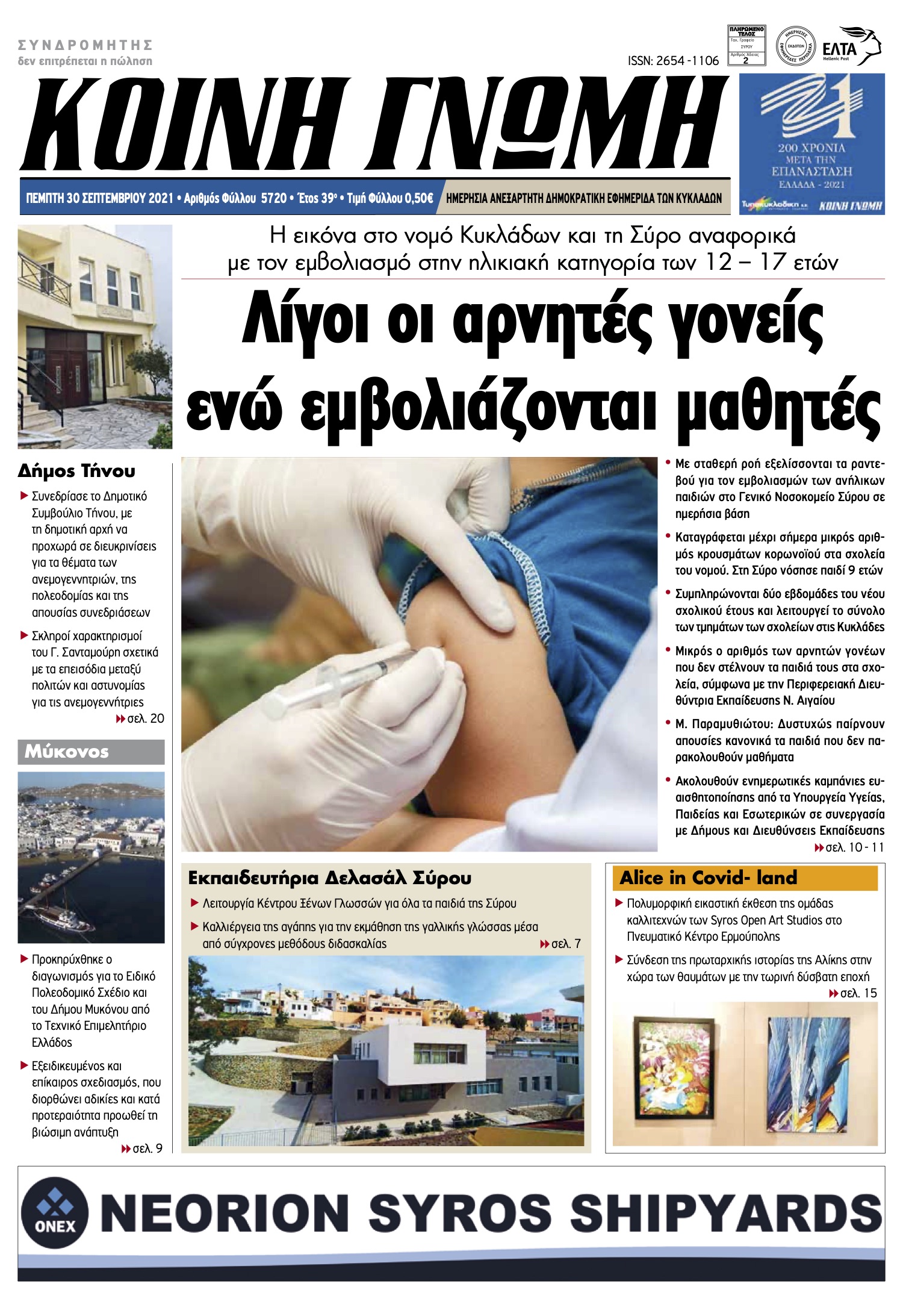 ΚΟΙΝΗ ΓΝΩΜΗ ΚΟΙΝΗ ΓΝΩΜΗ Ημερησια Εφημεριδα των Κυκλαδων