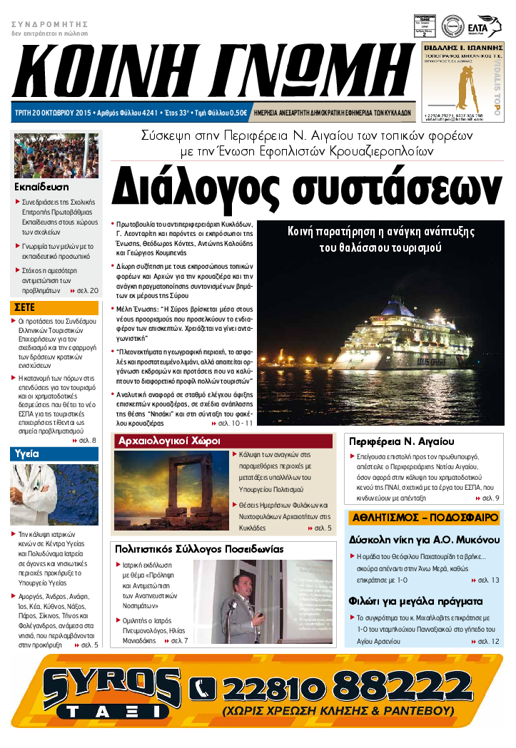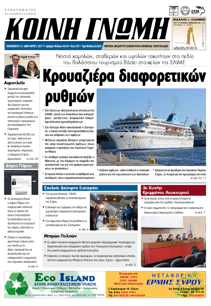 ΚΟΙΝΗ ΓΝΩΜΗ ΚΟΙΝΗ ΓΝΩΜΗ Ημερησια Εφημεριδα των Κυκλαδων