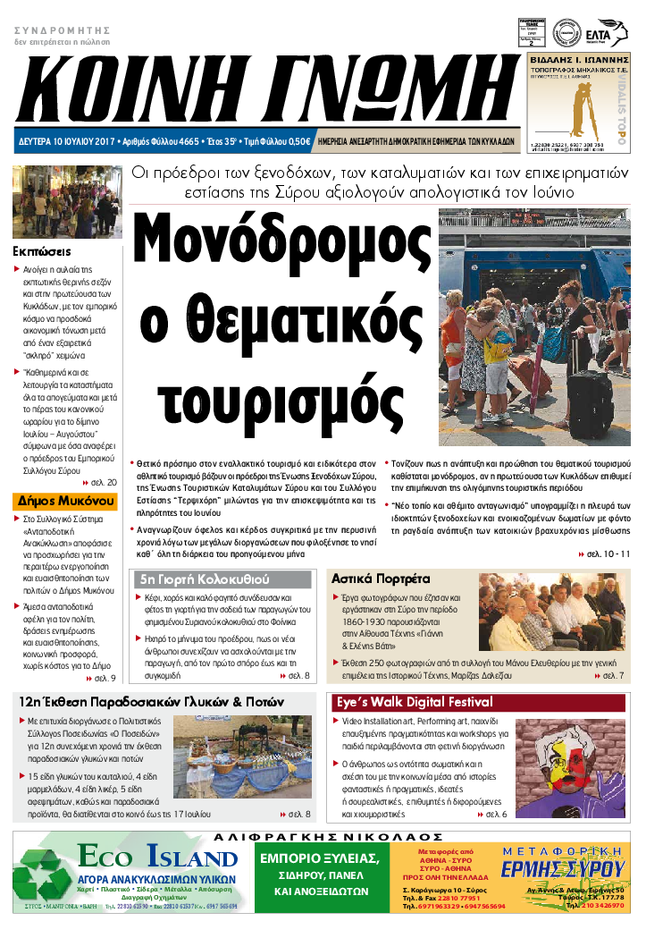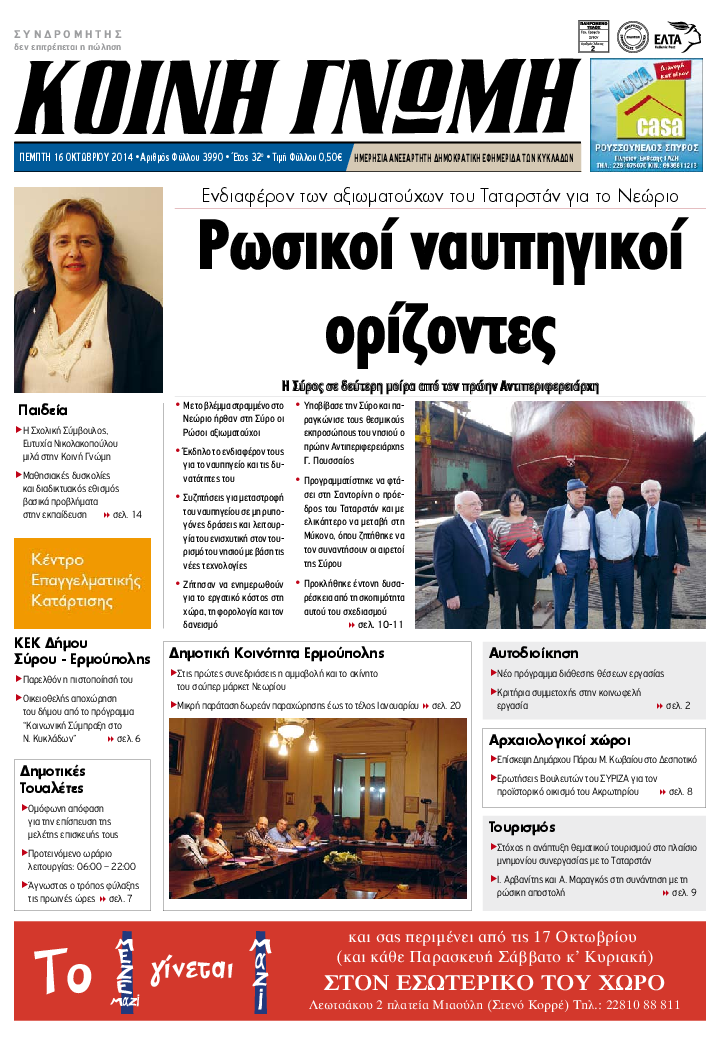 ΚΟΙΝΗ ΓΝΩΜΗ ΚΟΙΝΗ ΓΝΩΜΗ Ημερησια Εφημεριδα των Κυκλαδων