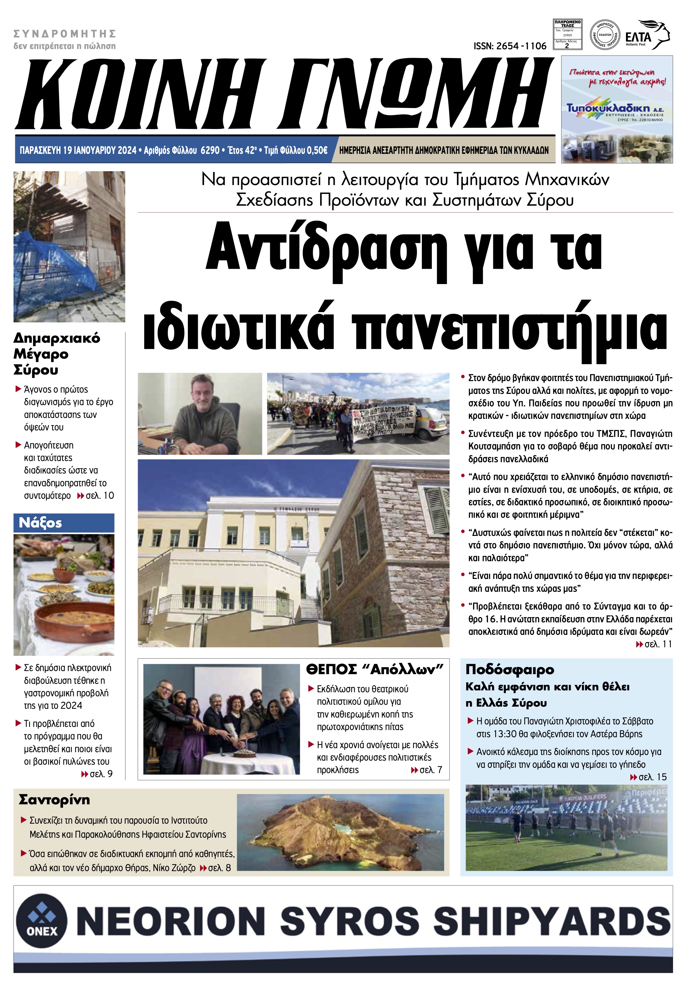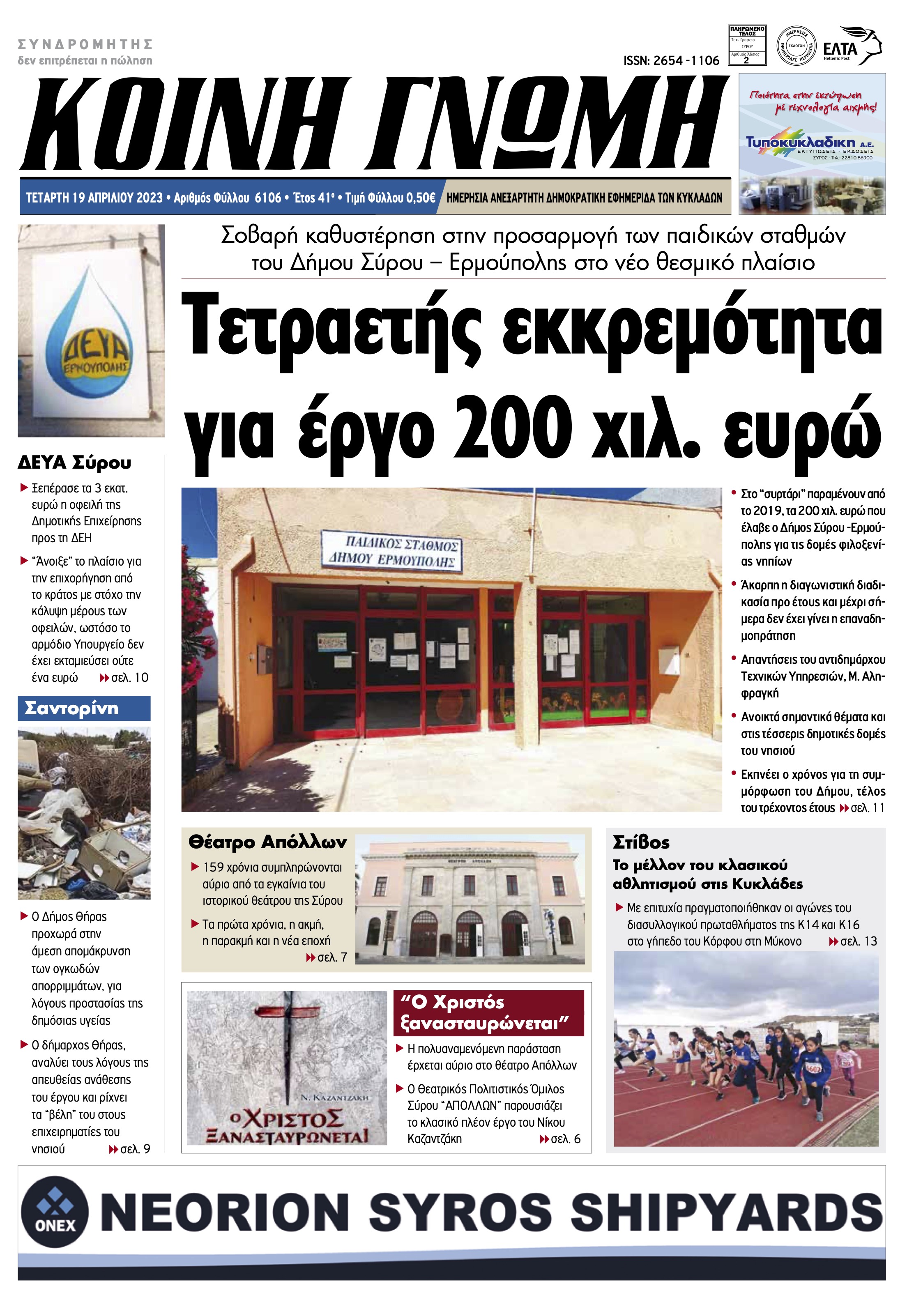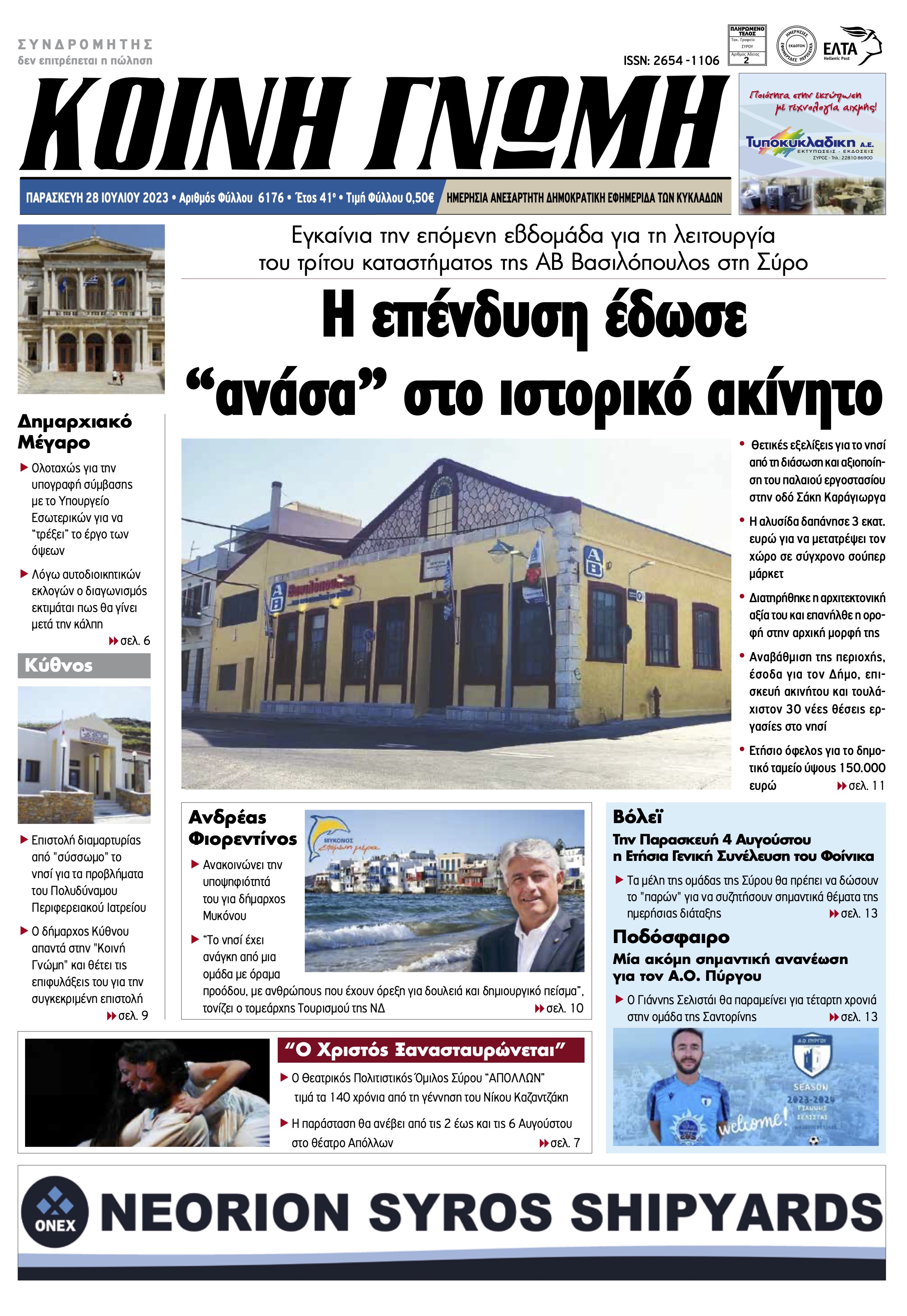 ΚΟΙΝΗ ΓΝΩΜΗ ΚΟΙΝΗ ΓΝΩΜΗ Ημερησια Εφημεριδα των Κυκλαδων