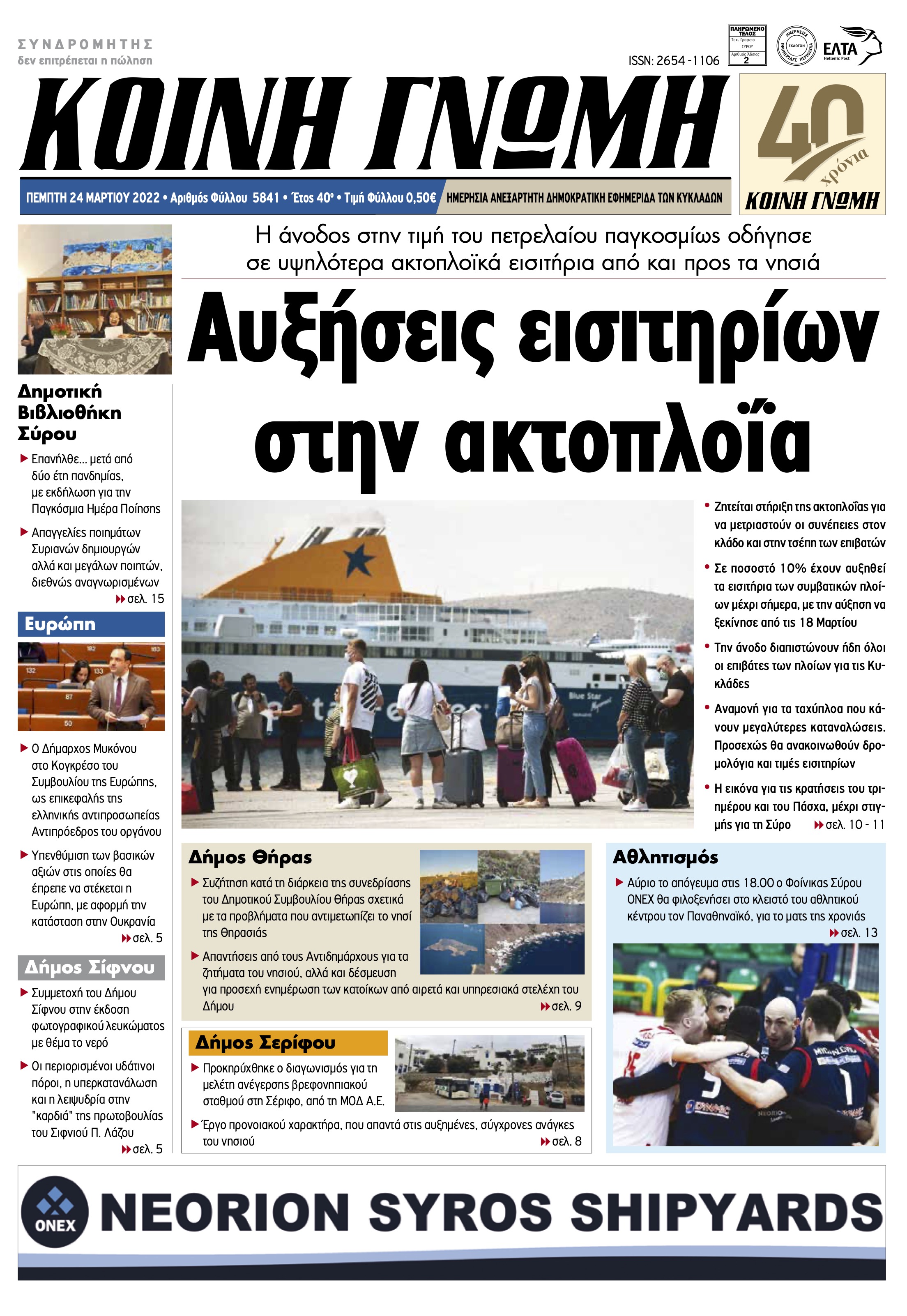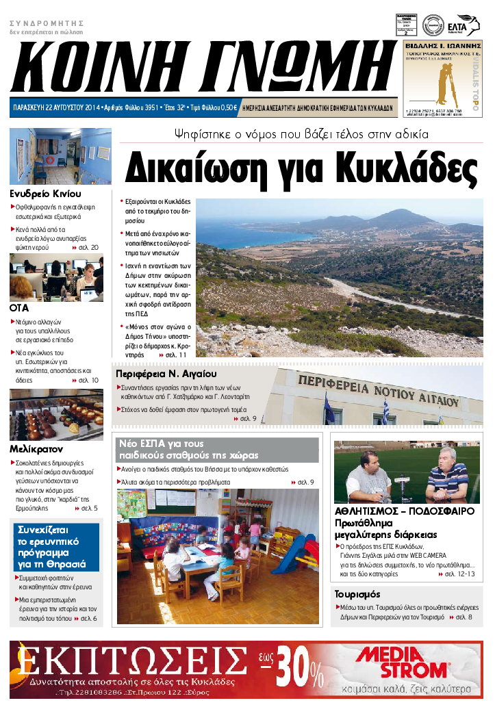 ΚΟΙΝΗ ΓΝΩΜΗ ΚΟΙΝΗ ΓΝΩΜΗ Ημερησια Εφημεριδα των Κυκλαδων