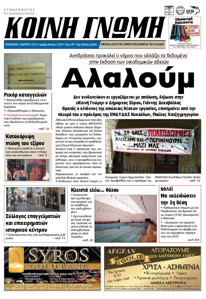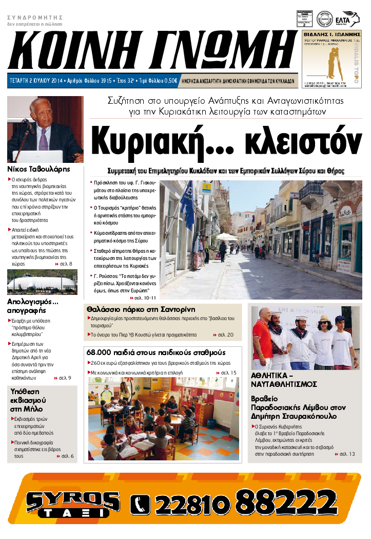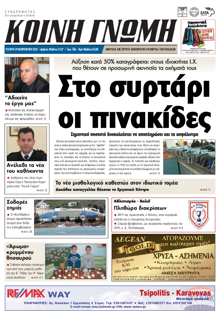 ΚΟΙΝΗ ΓΝΩΜΗ ΚΟΙΝΗ ΓΝΩΜΗ Ημερησια Εφημεριδα των Κυκλαδων
