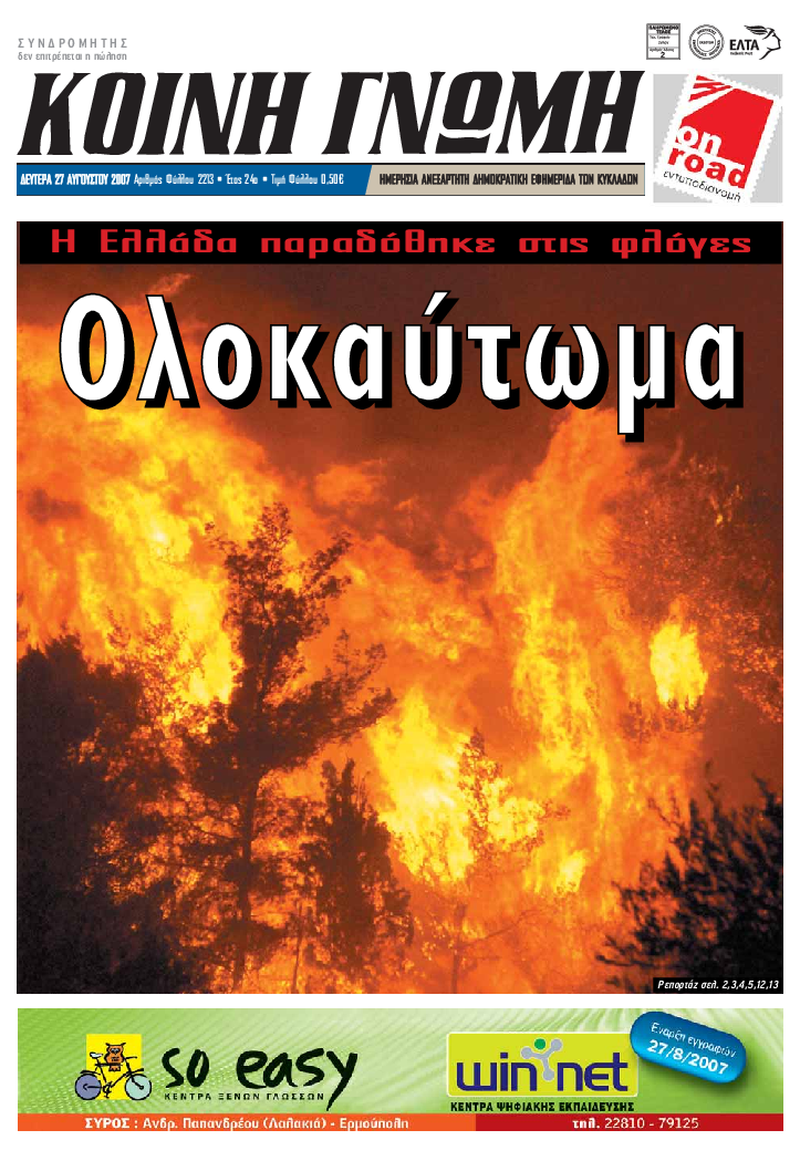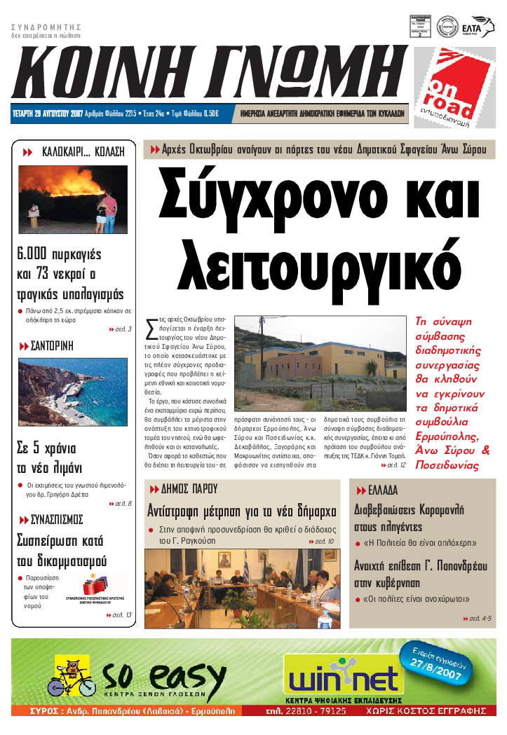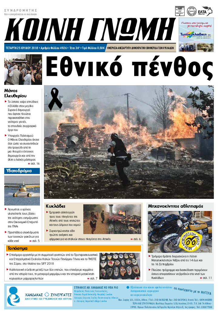 ΚΟΙΝΗ ΓΝΩΜΗ ΚΟΙΝΗ ΓΝΩΜΗ Ημερησια Εφημεριδα των Κυκλαδων