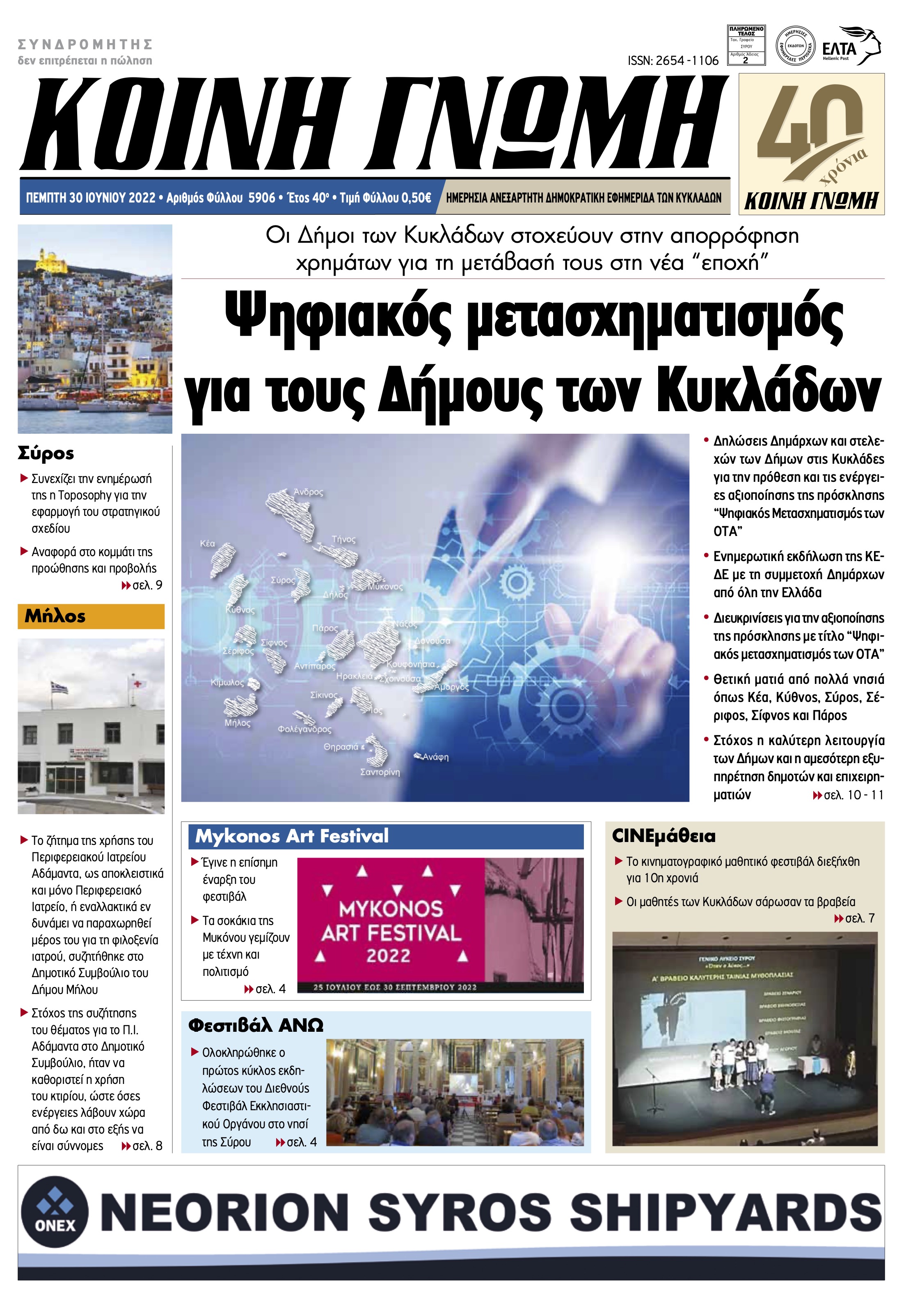 ΚΟΙΝΗ ΓΝΩΜΗ ΚΟΙΝΗ ΓΝΩΜΗ Ημερησια Εφημεριδα των Κυκλαδων