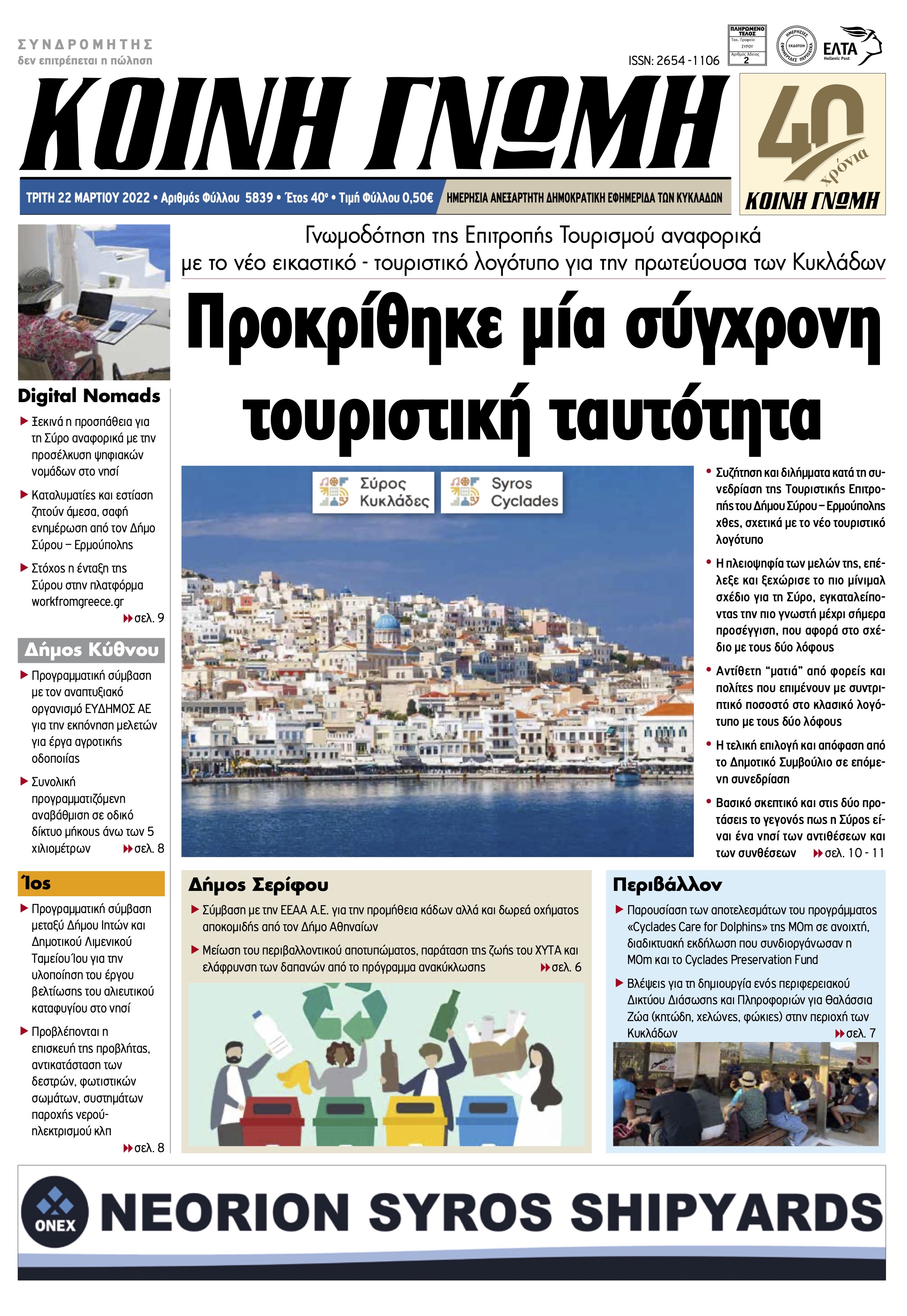 ΚΟΙΝΗ ΓΝΩΜΗ ΚΟΙΝΗ ΓΝΩΜΗ Ημερησια Εφημεριδα των Κυκλαδων