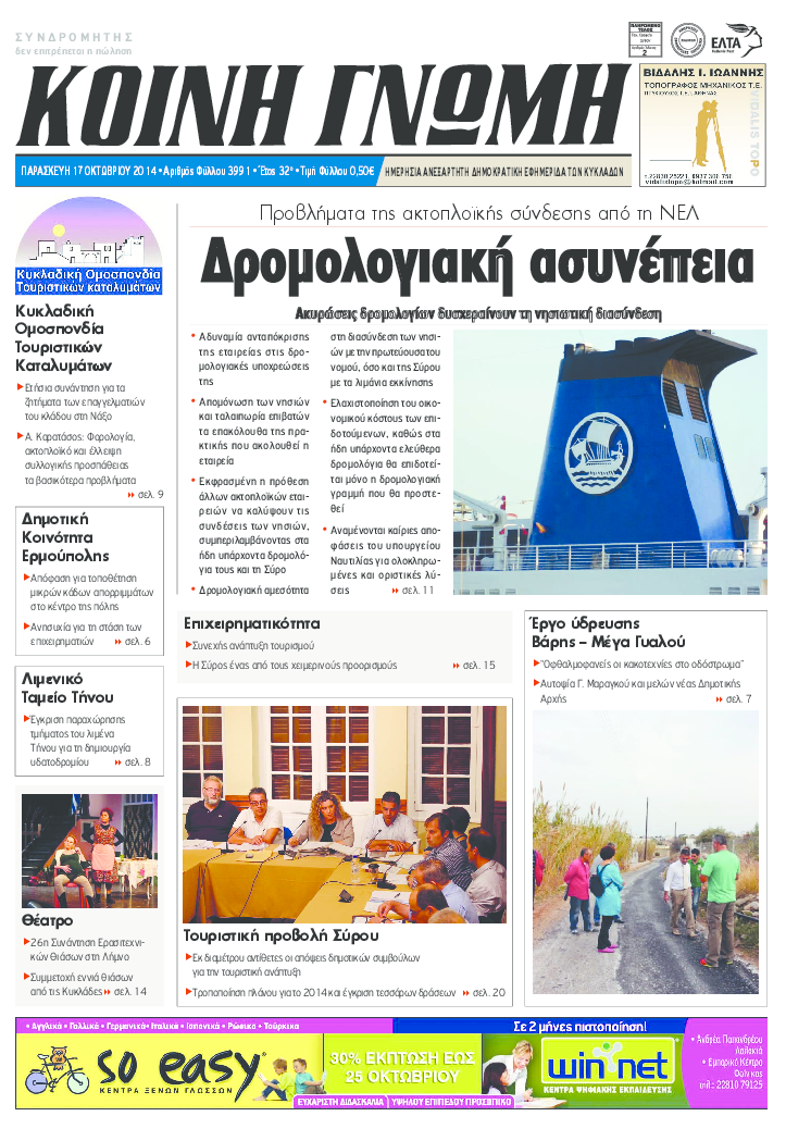 ΚΟΙΝΗ ΓΝΩΜΗ ΚΟΙΝΗ ΓΝΩΜΗ Ημερησια Εφημεριδα των Κυκλαδων