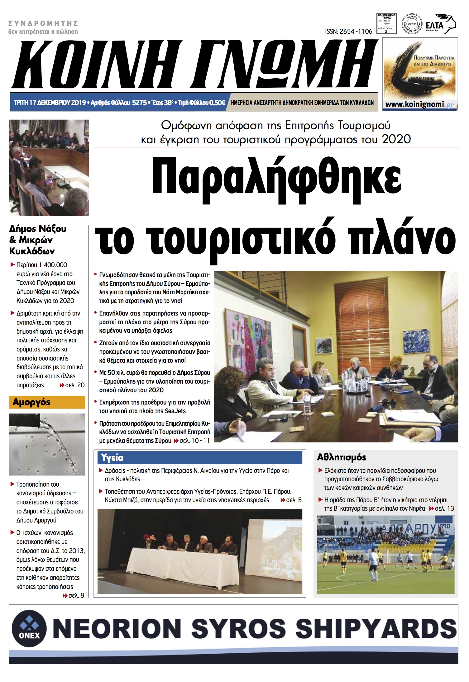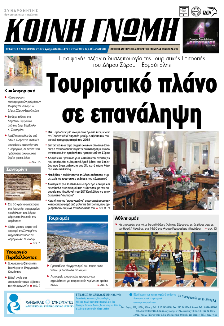 ΚΟΙΝΗ ΓΝΩΜΗ ΚΟΙΝΗ ΓΝΩΜΗ Ημερησια Εφημεριδα των Κυκλαδων