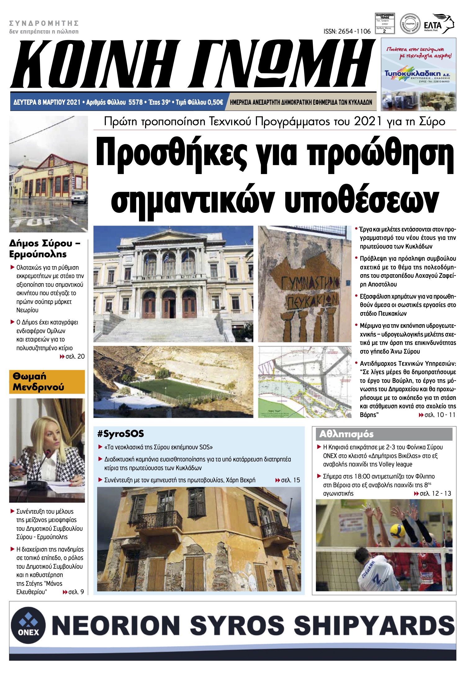 ΚΟΙΝΗ ΓΝΩΜΗ ΚΟΙΝΗ ΓΝΩΜΗ Ημερησια Εφημεριδα των Κυκλαδων