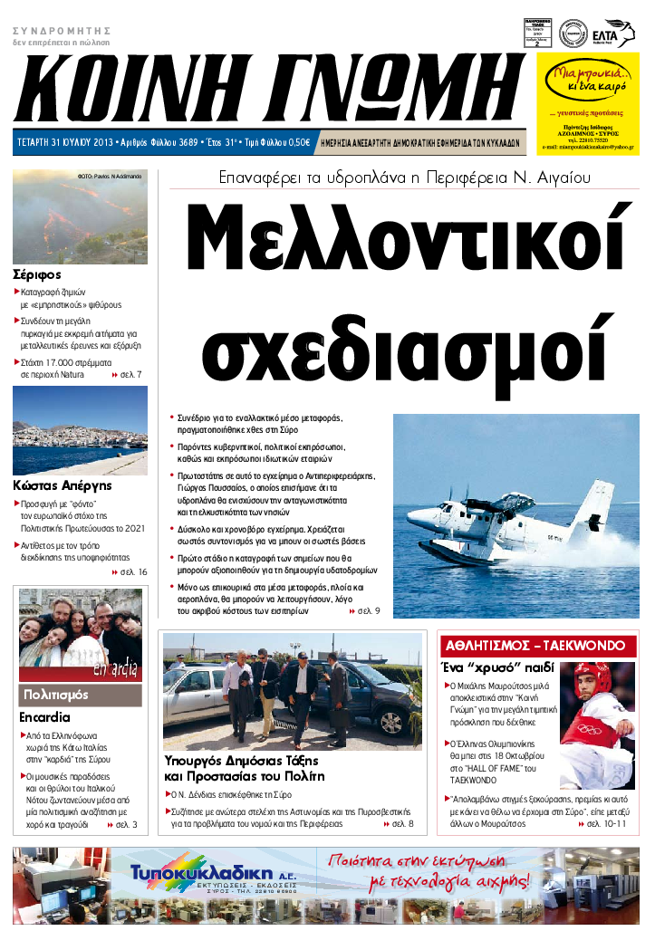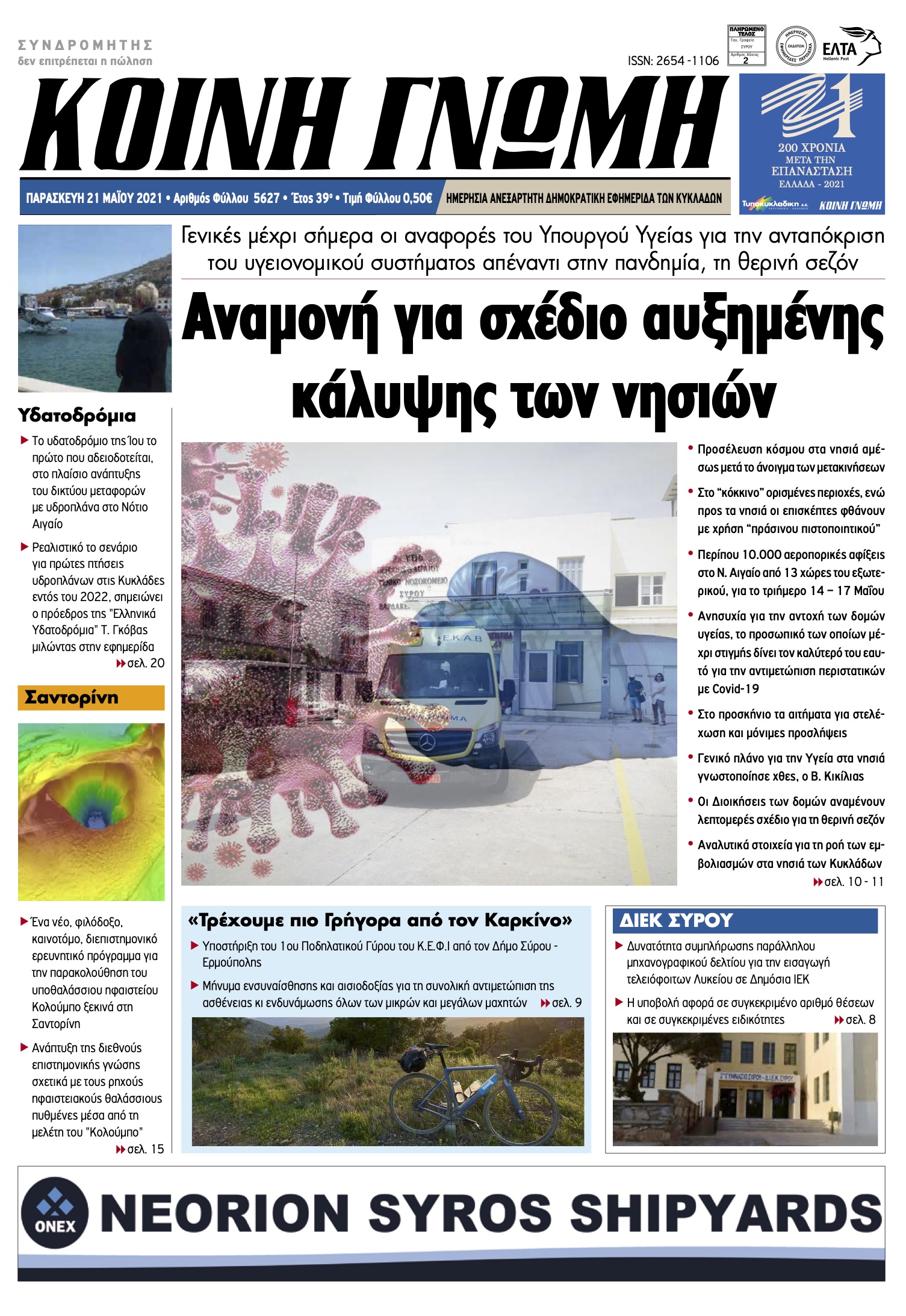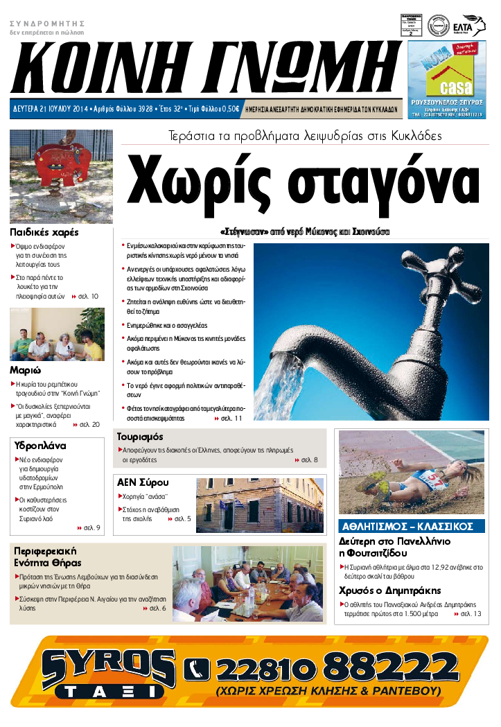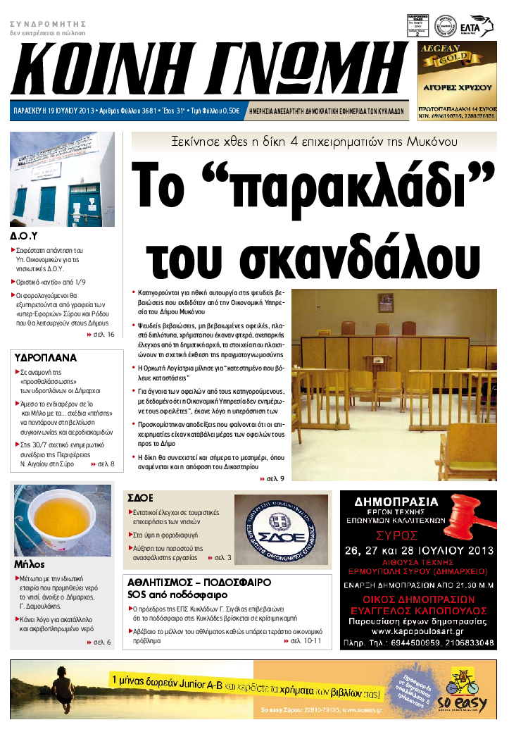 ΚΟΙΝΗ ΓΝΩΜΗ ΚΟΙΝΗ ΓΝΩΜΗ Ημερησια Εφημεριδα των Κυκλαδων