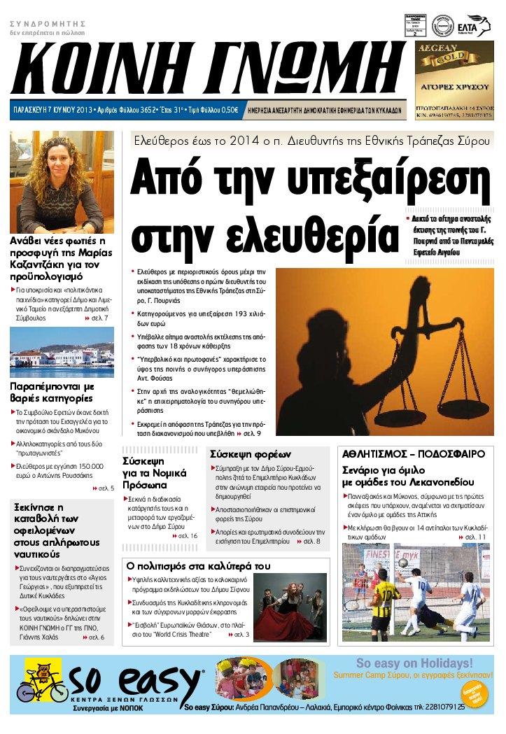 ΚΟΙΝΗ ΓΝΩΜΗ ΚΟΙΝΗ ΓΝΩΜΗ Ημερησια Εφημεριδα των Κυκλαδων