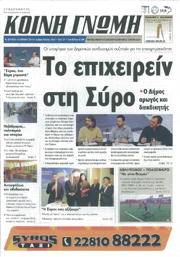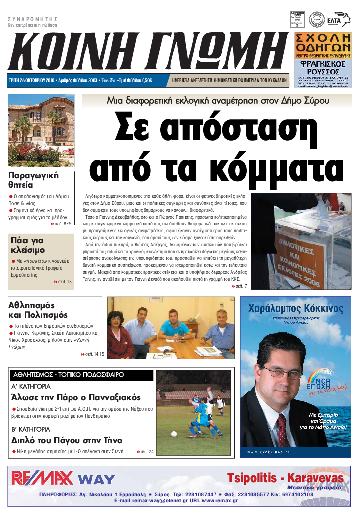 ΚΟΙΝΗ ΓΝΩΜΗ ΚΟΙΝΗ ΓΝΩΜΗ Ημερησια Εφημεριδα των Κυκλαδων