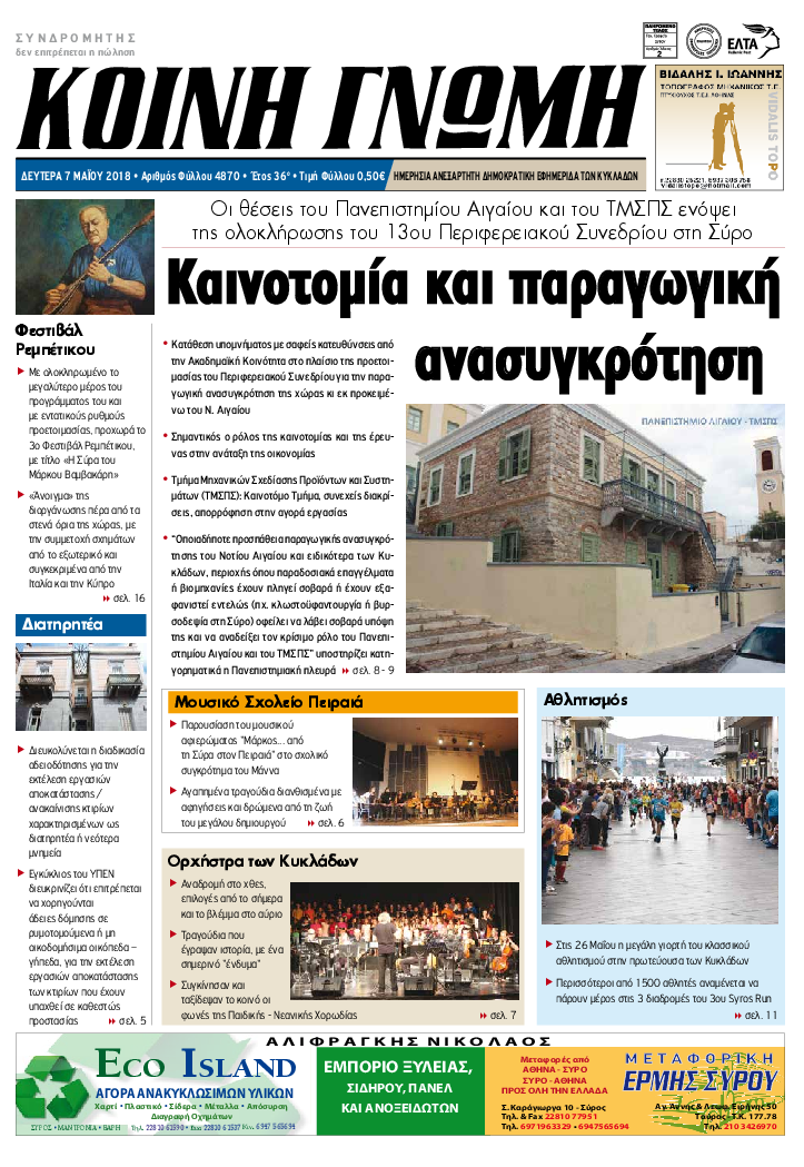 07 Μαϊ 2018 [Αρ. Φύλλου 4870]