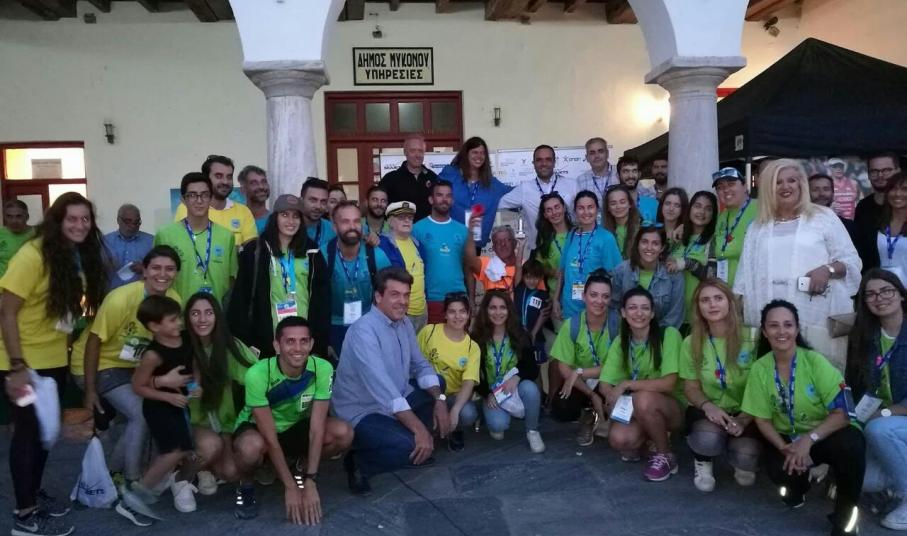 Ο τερματισμός των διαδρομών έγινε μπροστά από το ιστορικό κτίριο του Δημαρχείου Μυκόνου, παρουσία του Δημάρχου κ. Κωνσταντίνου Κουκά, Αντιδημάρχων, Δημοτικών Συμβούλων, Αστυνομίας , Λιμενικού , Λιμενικού Ταμείου, Προέδρου ΣΕΓΑΣ Κυκλάδων, Ιατρών, Χορηγών, Προσκόπων και πλήθος εθελοντών και κόσμου να υποδέχονται και να αγκαλιάζουν όλους τους συμμετέχοντες.