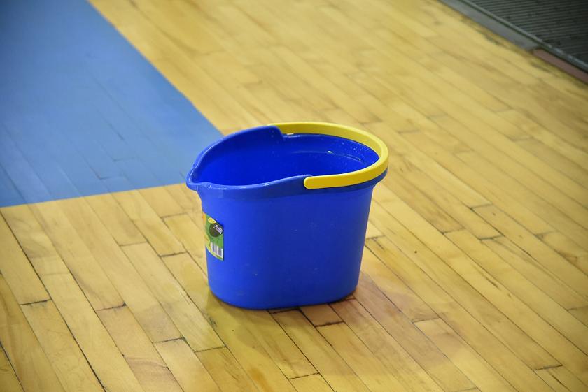 Η απουσία ουσιαστικών ενεργειών για την στεγανοποίηση της οροφής έχει σαν αποτέλεσμα να αυξάνεται η ποσότητα νερού που σε κάθε βροχή λιμνάζει στο παρκέ του γηπέδου, το οποίο από κλειστό γυμναστήριο φτάνει να θυμίζει… πισίνα.