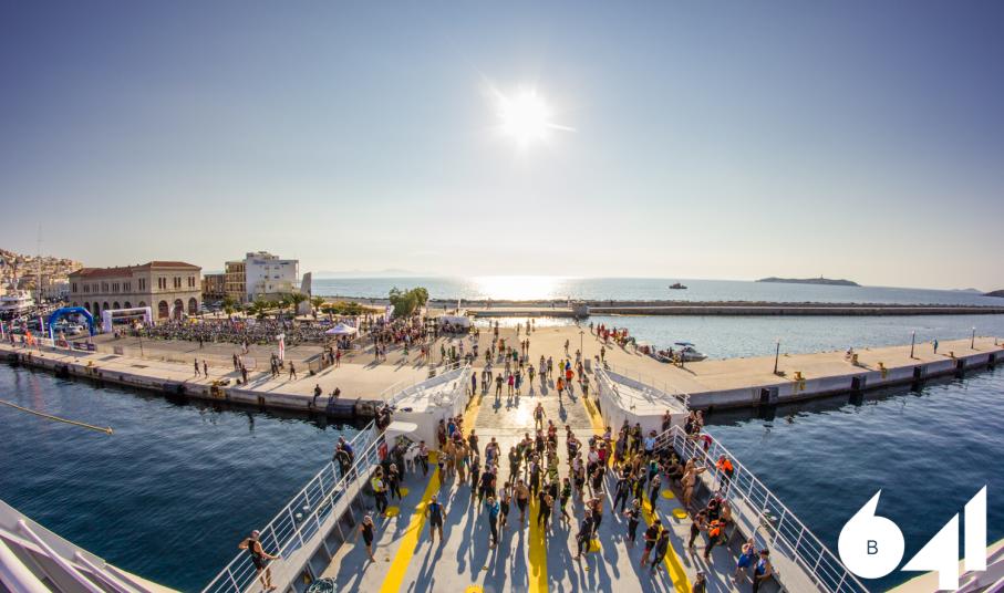 Η σειρήνα του Ferry δίνει εκκινήσεις και κολυμβητές ξεκινούν από το φάρο στο Γαϊδουρονήσι (Δίδυμη), να κολυμπήσουν και να καταλάβουν την Ερμούπολη, Τριαθλητές διαφόρων αποστάσεων ξεκινούν απ’ τα Βαπόρια και κατακλύζουν το λιμάνι.. το νησί ολόκληρο.