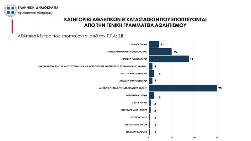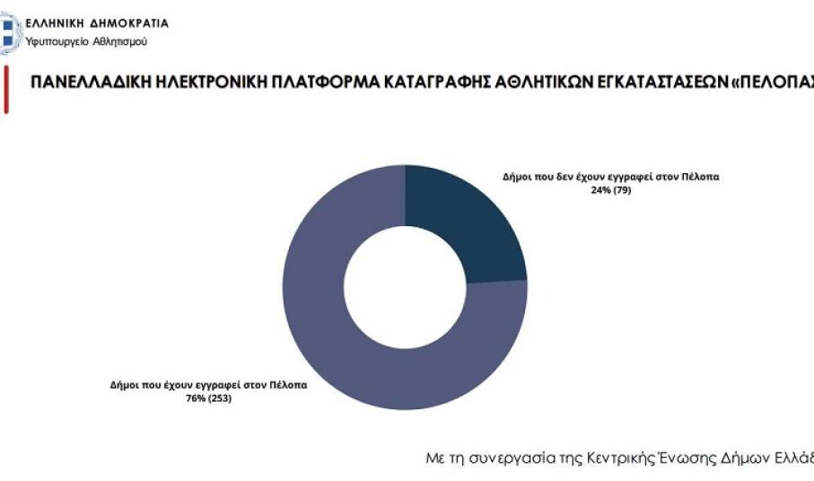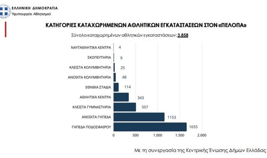 «Μέχρι στιγμής έχουν καταγραφεί στον ΠΕΛΟΠΑ 3.858 αθλητικές εγκαταστάσεις. Σύμφωνα με δηλώσεις των 253 Δήμων και των Οργανισμών τους, είναι καταγεγραμμένα: