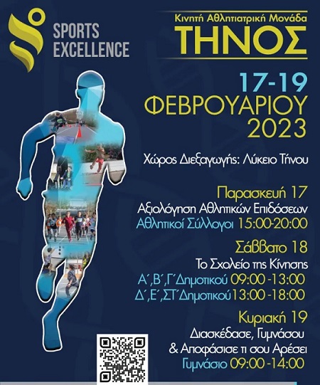 Με σκοπό την αξιολόγηση των αθλητικών ικανοτήτων των παιδιών, αλλά και την ανίχνευση παιδικής παχυσαρκίας, θα επισκεφτεί για πρώτη φορά το νησί της Τήνου, το τμήμα Αθλητικής Αριστείας – Sports Excellence, που λειτουργεί υπό την επιστημονική επίβλεψη της Α΄ Ορθοπεδικής Χειρουργικής Κλινικής της Ιατρικής Σχολής του Πανεπιστημίου Αθηνών και τα προγράμματά τους υλοποιούνται με αποκλειστική δωρεά από το Ίδρυμα Σταύρος Νιάρχος. Τη συγκεκριμένη πρωτοβουλία πήραν από κοινού, ο Δήμος Τήνου και ο αθλητικός όμιλος «Ποσειδώνας Τήνου».