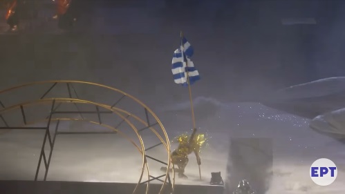 Τα φώτα έσβησαν, «μεταφέροντας» θεατές και τηλεθεατές σε έναν άλλο κόσμο. «Πρωταγωνιστής» ο «χρυσό εξερευνητή», που κατέβηκε από την οροφή του σταδίου.