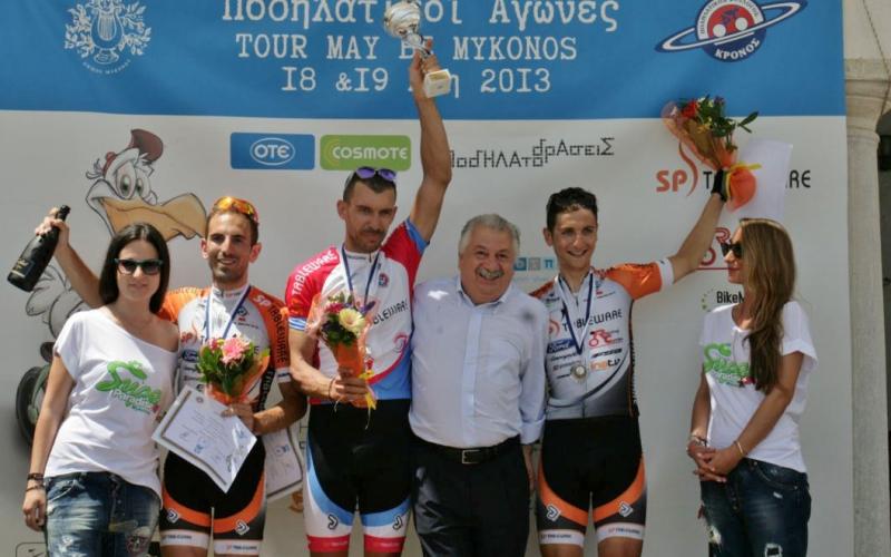Η τερματική κούρσα της τελευταίας ημέρας των αγώνων, ο αγώνας Σιρκουΐ στην πόλη της Μυκόνου σε μια διαδρομή 47,3 χλμ., κατέληξε στο Δημαρχείο της Μυκόνου όπου ο Δήμαρχος Μυκόνου Αθανάσιος Κουσαθανάς – Μέγας, υποδέχτηκε και βράβευσε τους νικητές, αλλά και τον πρωταθλητή από τη Μύκονο Γιώργο Δάντο. Κατά την απονομή των μεταλλίων ο Δήμαρχος απευθυνόμενος στους διοργανωτές, τους αθλητές αλλά και στο πλήθος των Μυκονιατών είπε: “Είναι ιδιαίτερη η χαρά όλων μας, που για πρώτη φορά διοργανώνονται ποδηλατικοί αγώνες στο νησί της Μυκόνου, και μάλιστα με μεγάλη επιτυχία. Όλοι γνωρίζουμε ότι η Μύκονος είναι πρωτοπόρος στον τουρισμό και τώρα τελευταία ξεκινάμε μια μεγάλη προσπάθεια και στον αθλητικό τουρισμό, με ιδιαίτερη βαρύτητα στον ποδηλατικό τουρισμό. Για μας πρωταρχικός σκοπός είναι ο ποδηλατικός αγώνας Μυκόνου να καθιερωθεί και να γίνει θεσμός με την αρωγή όλων μας. Από πλευράς Δήμου Μυκόνου θέλω να συγχαρώ τον ποδηλατικό σύλλογο “ΚΡΟΝΟΣ” που επέλεξε το νησί μας και διοργάνωσε με απόλυτη επιτυχία τους ποδηλατικούς αγώνες. Και ιδιαίτερα τον Πρόεδρο κ. Παντελή Παπάζογλου, τους εκπροσώπους της Ελληνικής Ομοσπονδίας Ποδηλάτου, τους αθλητές ποδηλάτες, τη γραμματεία των αγώνων, όλους όσους εργάστηκαν για να πραγματοποιηθεί με επιτυχία ο 1ος ποδηλατικός αγώνας στη Μύκονο. Αισθάνομαι την υποχρέωση να ευχαριστήσουμε για την άριστη συνεργασία που είχαμε την Αστυνομία Μυκόνου και το Διοικητή κ. Λαγογιάννη, το Λιμεναρχείο Μυκόνου και τον Λιμενάρχη κ. Ζυγούρη, τον Διοικητή της 6ης ΜΣΕΠ, το Δημοτικό Λιμενικό Ταμείο, τη Δημοτική Αστυνομία, την KERNEL SECURITY, τα ξενοδοχεία της Μυκόνου για τη δωρεάν διαμονή των αθλητών, τους εστιάτορες, την FAST FERRIES, το πρακτορείο SEA AND SKY, την εταιρία ενοικιάσεως Αυτοκινήτων FABRICAS, όλους τους χορηγούς, τους εθελοντές Μυκόνου, την εκπομπή ¨ΠΟΔΗΛΑΤΟΔΡΑΣΕΙΣ¨ του ΣΚΑΙ και το φίλο μου Γιώργο Πετρόπουλο, τον Νικόλαο Παντοφλά που διέθεσε το ελικόπτερο για την τηλεοπτική κάλυψη, τα Σωματεία ταξί – ΚΤΕΛ και όλους τους επαγγελματίες του νησιού για την κατανόηση τους και το Κέντρο Υγείας Μυκόνου.