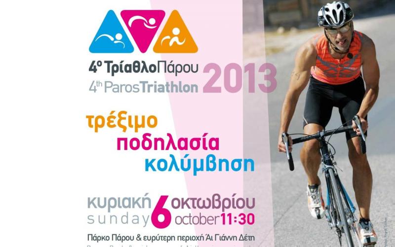 Το Πάρκο Πάρου, ο Ποδηλατικός Όμιλος Πάρου και η Ευζωία συνδιοργανώνουν το 4ο Τρίαθλο Πάρου, με την υποστήριξη του Ομίλου Θαλάσσιου Σκι Πάρου, του Water Ski Zone και της Ελληνικής Ομάδας Διάσωσης – Παράρτημα Κυκλάδων.