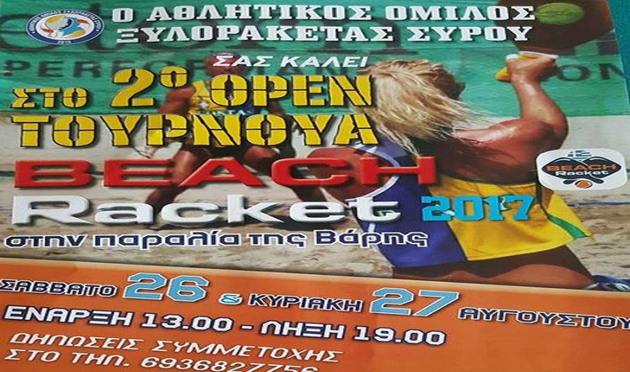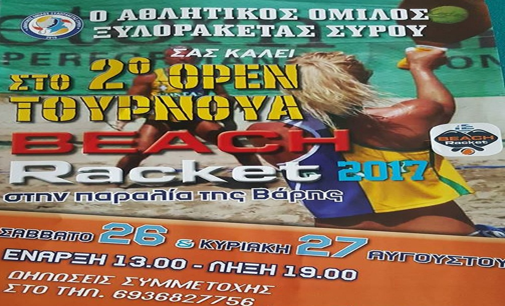 Ο τοπικός σύλλογος Ξυλορακέτας θα πραγματοποιήσει το «2ο open τουρνουά Beach Racket» στην παραλία της Βάρης το Σάββατο 26 και την Κυριακή 27 Αυγούστου. Οι φίλοι του αθλήματος θα έχουν μία ακόμη ευκαιρία να αγωνισθούν στο ειδικά διαμορφωμένο γήπεδο που βρίσκεται στην παραλία της Βάρης και ταυτόχρονα να δοκιμάσει τις… δυνάμεις του. Ο Α.Ο. Ξυλορακέτας Σύρου ο οποίος έχει ενεργή δραστηριότητα τα τελευταία χρόνια, κάθε καλοκαίρι διοργανώνει ανοικτά τουρνουά στην Βάρη, με το επίπεδο των αγώνων να ανεβαίνει συνεχώς.