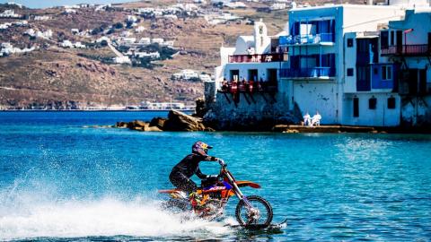 O Robbie Maddison οδηγεί τη μοτοσυκλέτα του μέσα στη θάλασσα της Μυκόνου!
