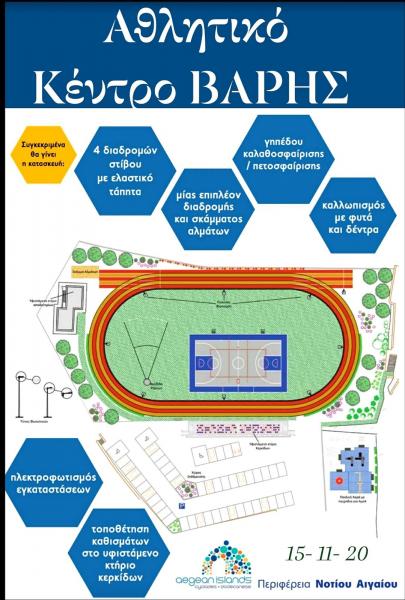 Για την υπογραφή της σύμβαση μεταξύ της Περιφέρειας Νοτίου Αιγαίου και της τεχνικής εταιρίας που θα αναλάβει τα έργα κατασκευής του γηπέδου της Βάρης, ο χωρικός αντιπεριφερειάρχης Κυκλάδων, Γιώργος Λεονταρίτης, είπε: «Μέσα σε χρόνους πολύ σύντομους καταφέραμε να προχωρήσουμε τις διαδικασίες και τώρα να είμαστε στην ευχάριστη θέση να υπογράψουμε με τον εργολάβο. Πρώτη φορά που αναφερθήκαμε στο συγκεκριμένο έργο ήταν 15 Νοεμβρίου 2020. Μέσα σε λίγους μήνες καταφέραμε να διεκπεραιώσουμε όλες τις διαδικασίες (μελέτη, δημοπράτηση, ολοκλήρωση των διαδικασιών) και σήμερα (Τρίτη 24 Αυγούστου) είχαμε την χαρά να υπογράψουμε τη σύμβαση με τον εργολάβο. Είναι ένα έργο πολύ σημαντικό. Μπορεί να μην είναι η πλήρης αθλητική εγκατάσταση και που θα επιθυμούσαμε να έχουμε για τον στίβο, όμως είναι ένα προπονητικό έργο πολύς καλής ποιότητας. Σε αυτό τον αθλητικό χώρο θα μπορούν να προπονηθούν οι αθλητές του κλασσικού αθλητισμού και μέσα απ’ αυτό θα μπορούν να βγουν παιδιά τα οποία θα έχουν τη δυνατότητα να διακριθούν σε Πανελλήνιο κι όχι μόνο επίπεδο».