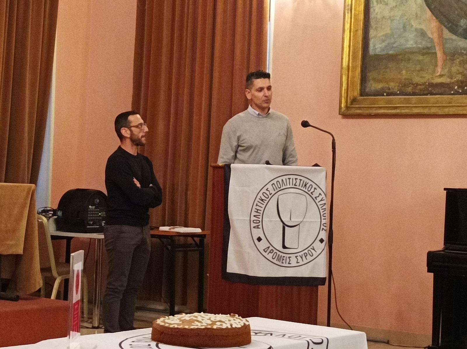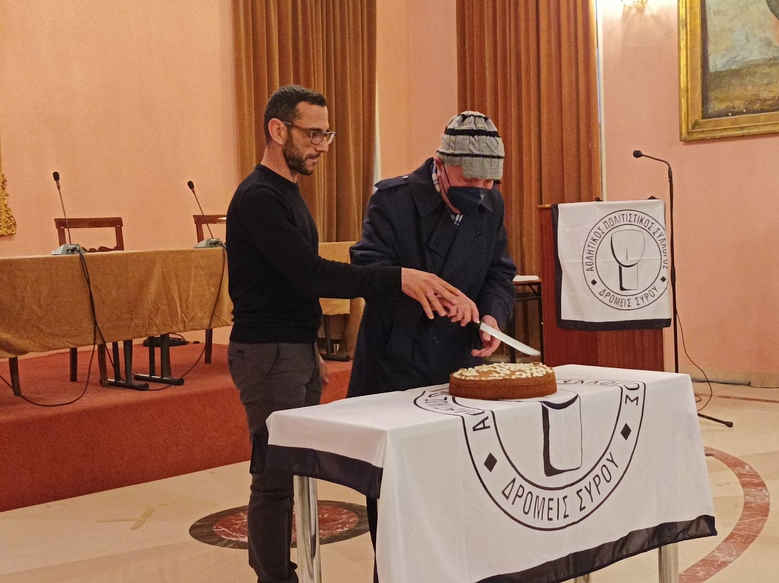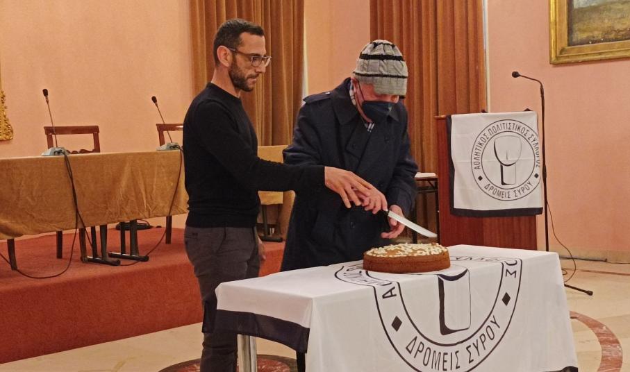 Την πίτα του συλλόγου έκοψε ο μεγαλύτερος εν ενεργεία αθλητής του Συλλόγου κ. Γιώργος Λαγογιάννης. Ο κ. Λαγογιάννης με την απίστευτη δύναμη και θέληση που δείχνει έχει κάνει άπαντες να μιλούν με τα καλύτερα λόγια και ταυτόχρονα να αποτελεί ένα λαμπρό παράδειγμα για όλους τους αθλητές. Θα πρέπει να σημειώσουμε εδώ πως ο 85χρονος αθλητής αγωνίζεται έως και σήμερα καθώς τρέχει στους δρόμους της Σύρου.