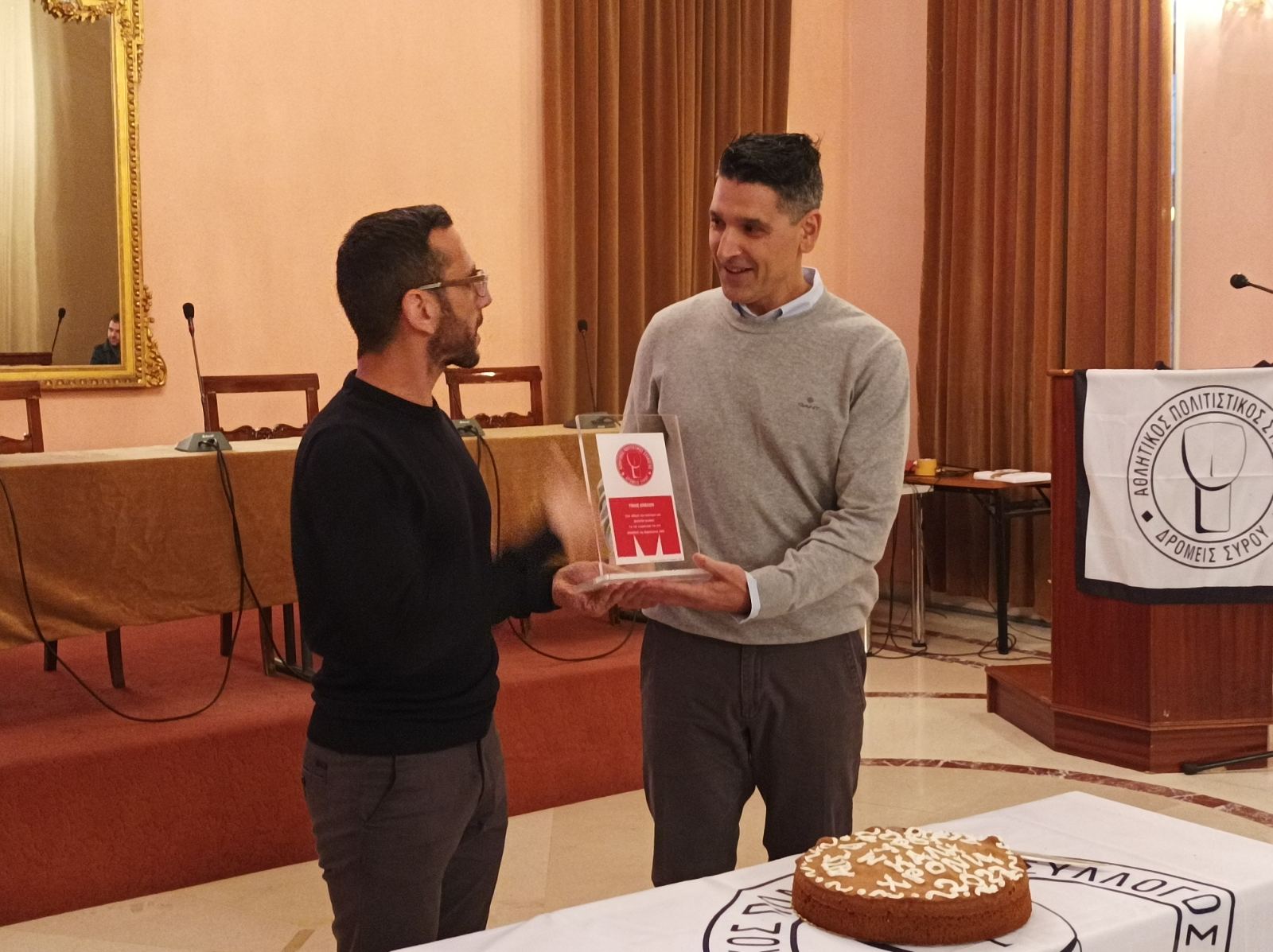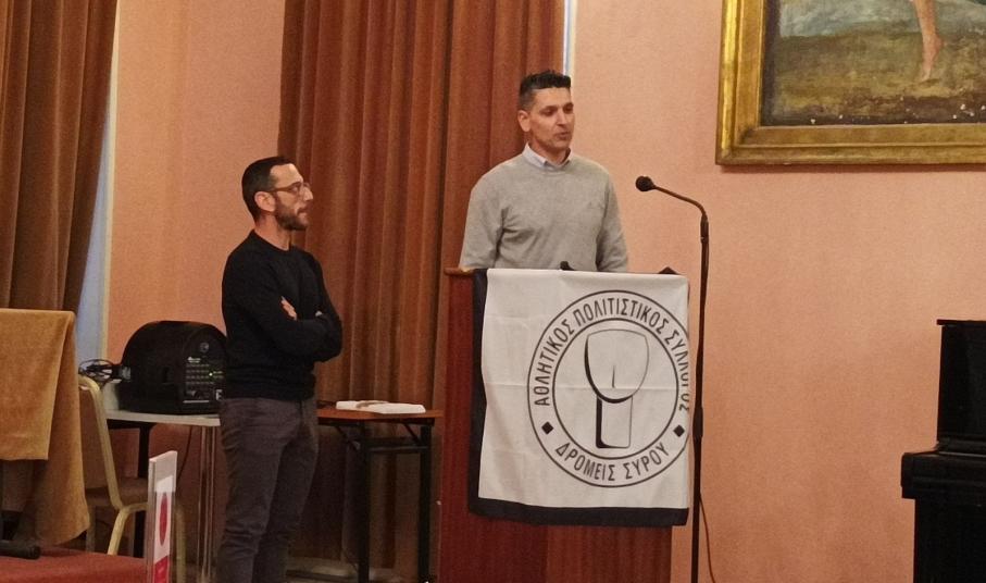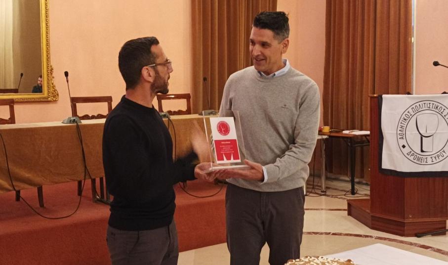 Ταυτόχρονα βράβευσε και τον αθλητή από την Σύρο που πήρε μέρος στον αγώνα Iron man στην Βαρκελώνη. Μάλιστα όπως τόνισε ο αθλητής του συλλόγου μέχρι να φτάσει εκεί είχε να αντιμετωπίσει και διάφορες δυσκολίες.