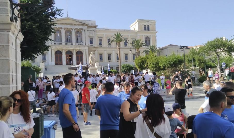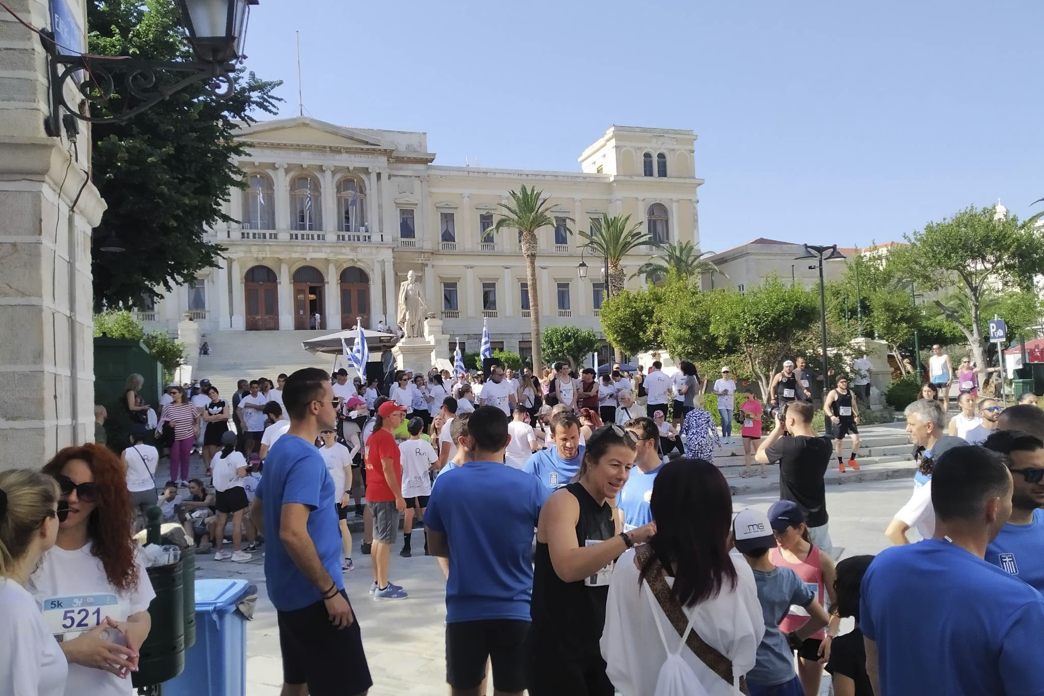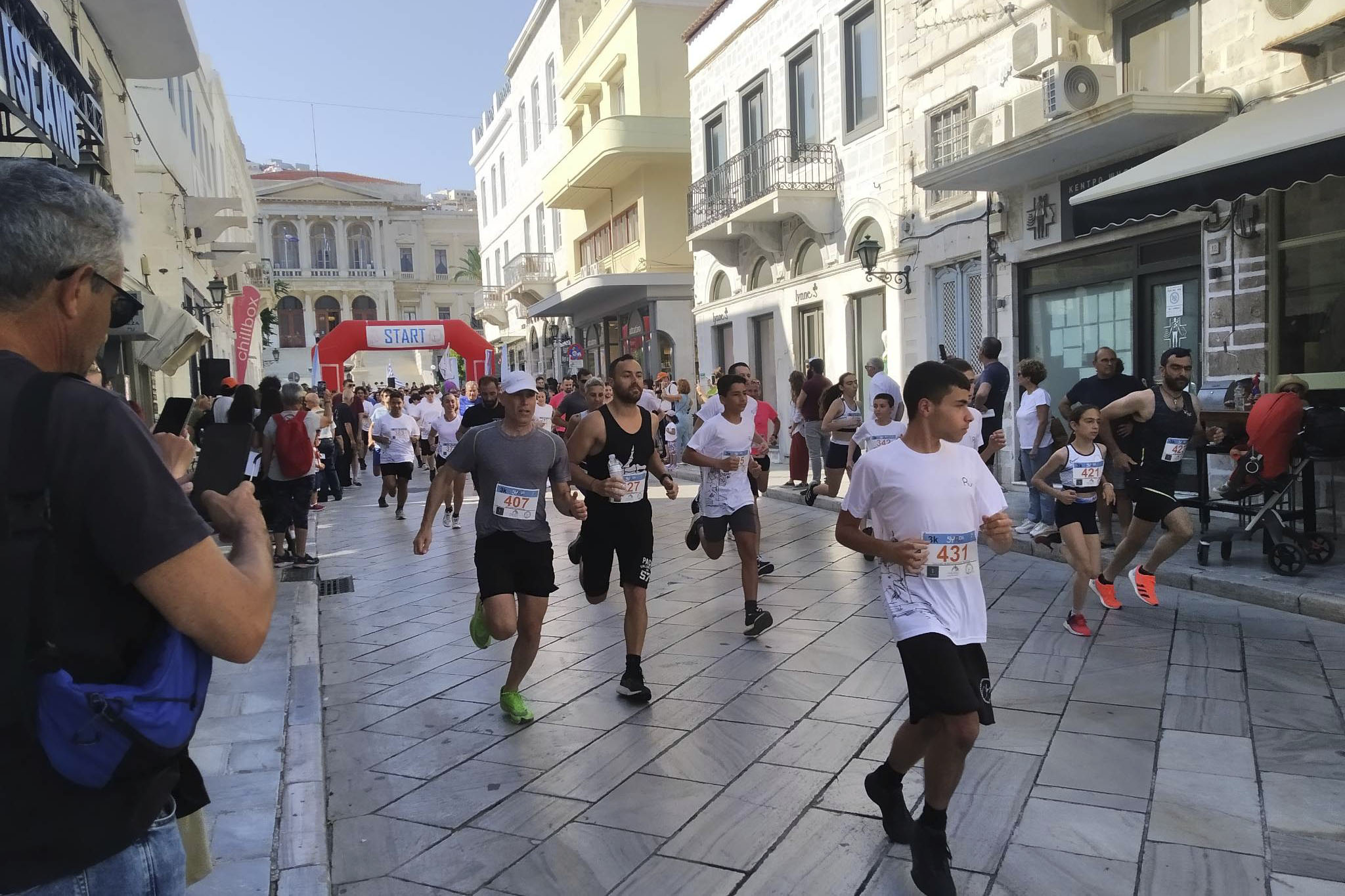 Με μεγάλη επιτυχία ολοκληρώθηκε το Syros Run, το οποίο συνδιοργάνωσαν ο Αθλητικός Πολιτιστικός Σύλλογος «Δρομείς Σύρου, με την Περιφέρεια Νοτίου Αιγαίου και τον Δήμο Σύρου Ερμούπολης. Οι δρομείς από νωρίς γέμισαν την πλατεία Μιαούλη δίνοντας έναν αθλητικό τόνο στην πρωτεύουσα των Κυκλάδων. Η εκκίνηση δόθηκε στις 17:30, για τις διαδρομές των 3,5 και 10 χιλιομέτρων. Τελευταία ξεκίνησαν οι μικροί αθλητές όπου και διένυσαν την απόσταση των 600 μέτρων. Τέλος, στον αγώνα δρόμου συμμετείχε ο 85χρονος Γιώργος Λαγογιάννης, με τον κόσμο να χειροκροτεί την προσπάθεια του μεγαλύτερου σε ηλικία αθλητής. Επίσης Από το άγαλμα Νίκης δόθηκε η εκκίνηση των Special Run (ΑΜΕΑ).