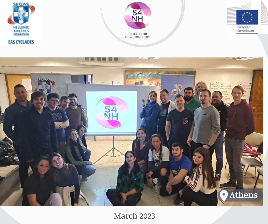 Επιτυχώς ολοκληρώθηκε η πρώτη φάση του ευρωπαϊκού προγράμματος S4NH! “Skills for New Horizons” με την πραγματοποίηση ενός κύκλου σεμιναρίων εκπαίδευσης σχετικά με τον αθλητισμό και την νεανική επιχειρηματικότητα. Μέρος πήραν 20 συμμετέχοντες/ουσες από την Ιταλία, την Ρουμανία, την Βουλγαρία, την Πολωνία και την Ελλάδα.