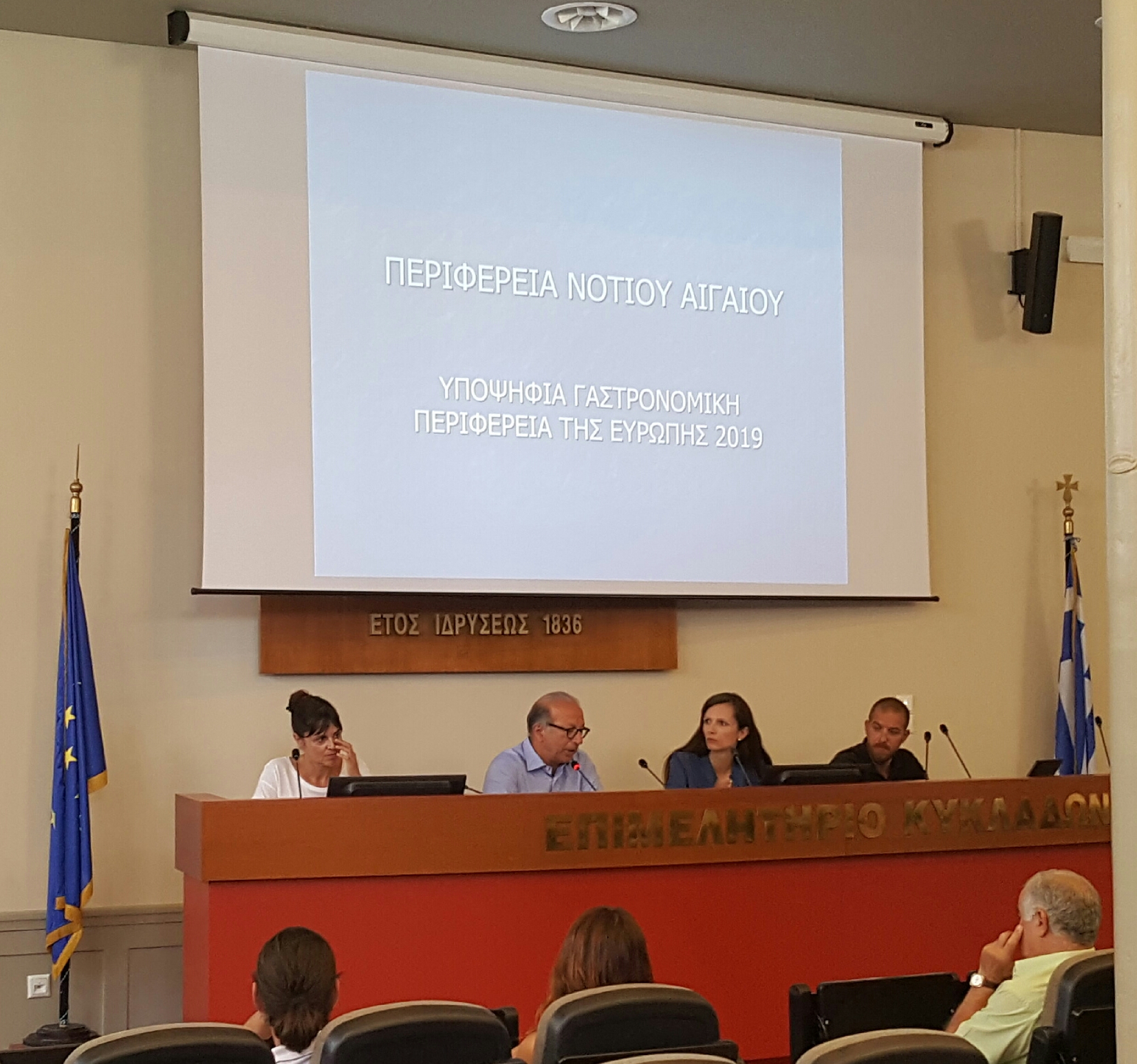 Η πρώτη διαβούλευση της Περιφέρειας Νοτίου Αιγαίου για την κατάρτιση του φακέλου υποψηφιότητάς της ως «Γαστρονομική Περιφέρεια της Ευρώπης 2019», στις Κυκλάδες, πραγματοποιήθηκε στη Σύρο, την Τρίτη 6 Ιουλίου. Παρόντες ήταν οι κοινωνικοί εταίροι και φορείς του νησιού αλλά και των νησιών της Μήλου, της Άνδρου, της Μυκόνου, της Τήνου και της Πάρου, οι οποίοι συμμετείχαν στην διαβούλευση μέσω τηλεδιάσκεψης.